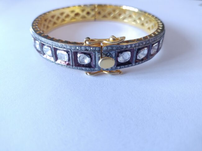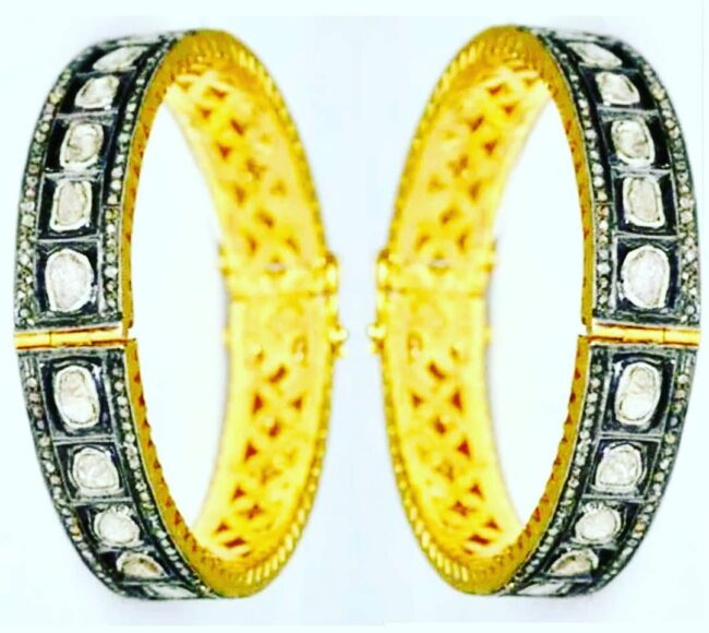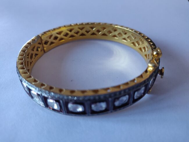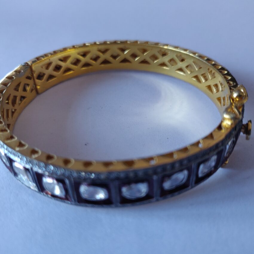 Antique Gold-Plated Kundan Bangle with Polki and Pave Stone Diamond