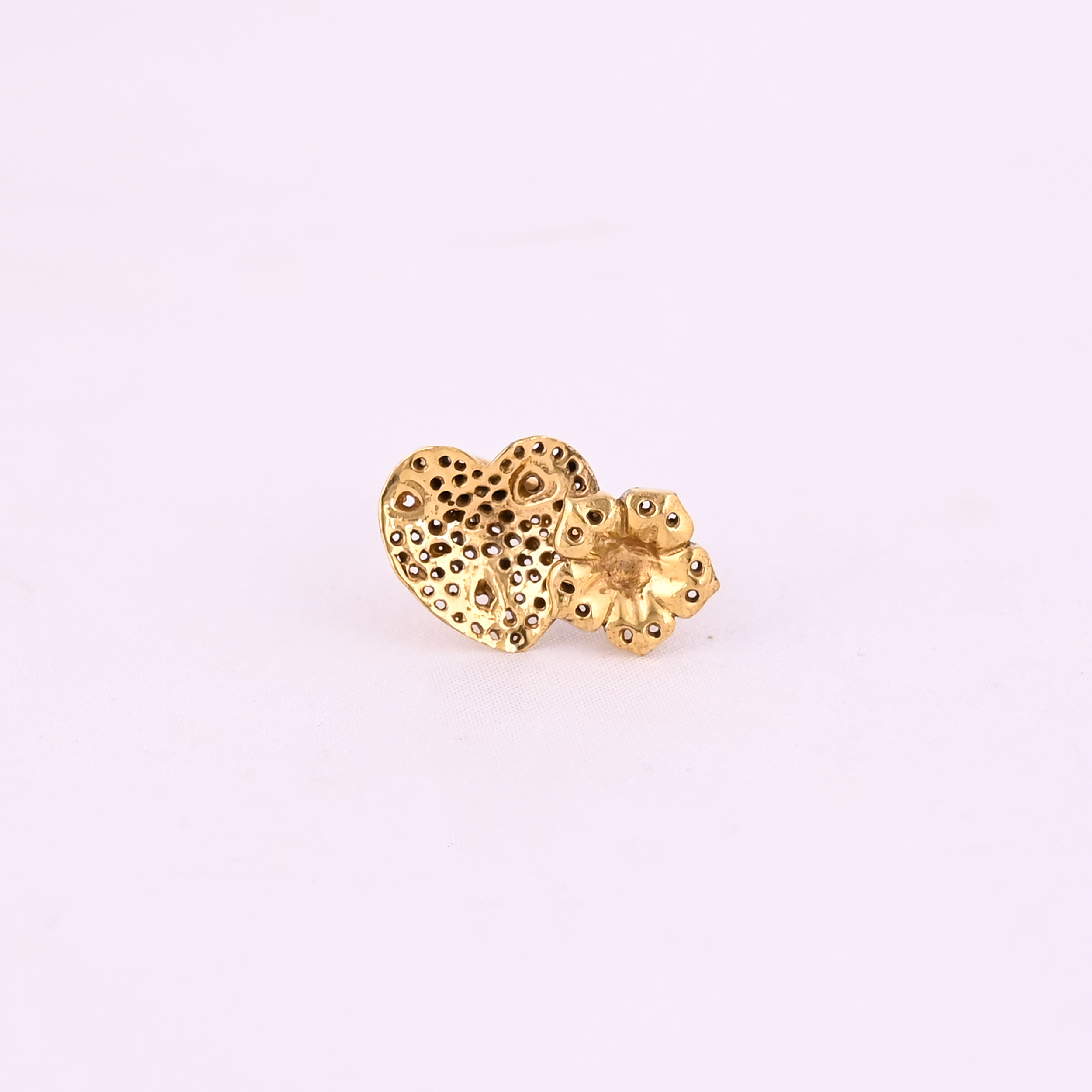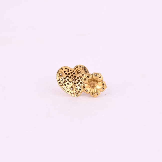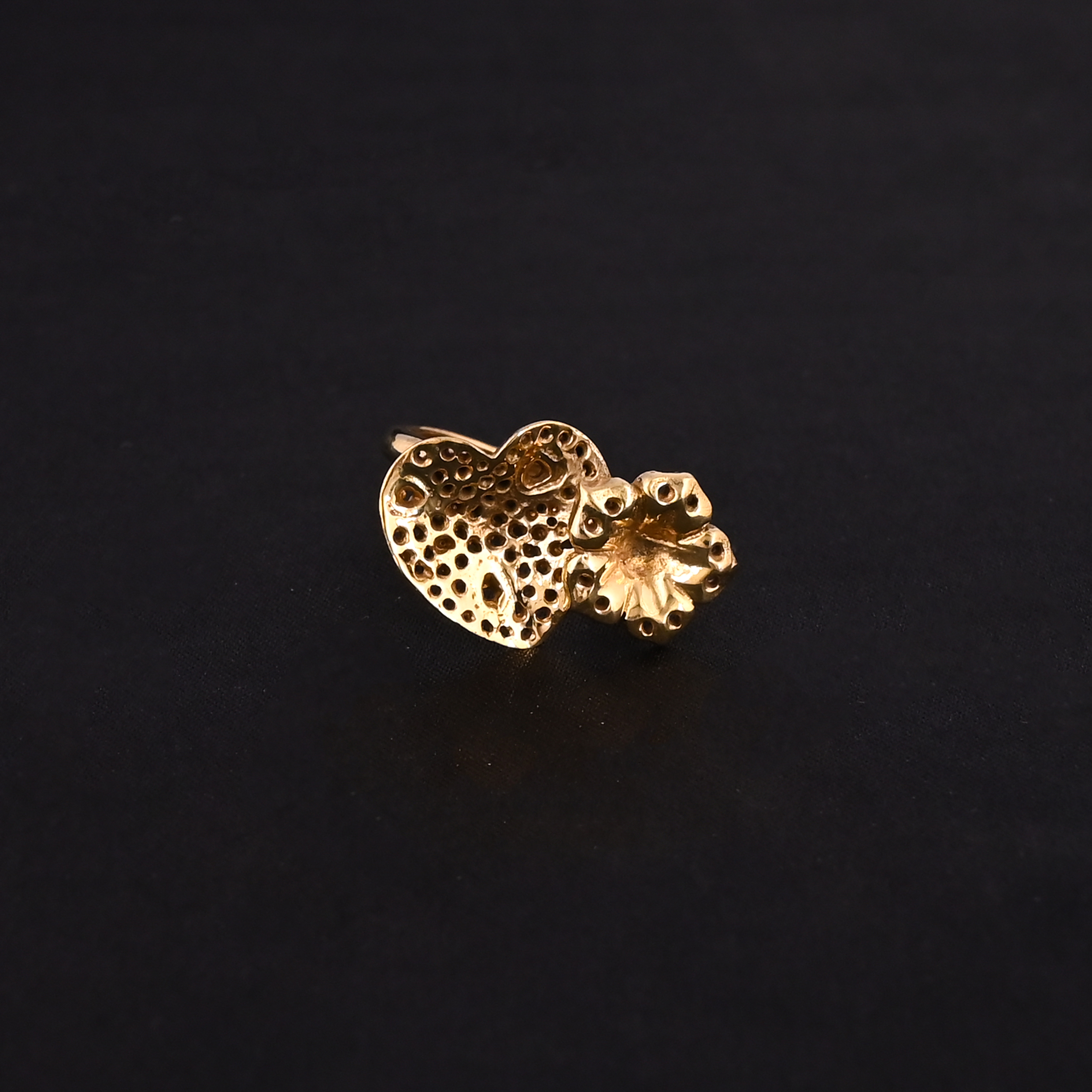 Heart Floral Charm Gold-Plated Ring-Playful yet artistic, this gold-tone ring features a unique design combining a textured heart and a bold flower motif. The heart is intricately detailed with dot and crater-like textures, giving it a handcrafted, organic feel, while the flower complements it with sculpted petals and dotted accents.