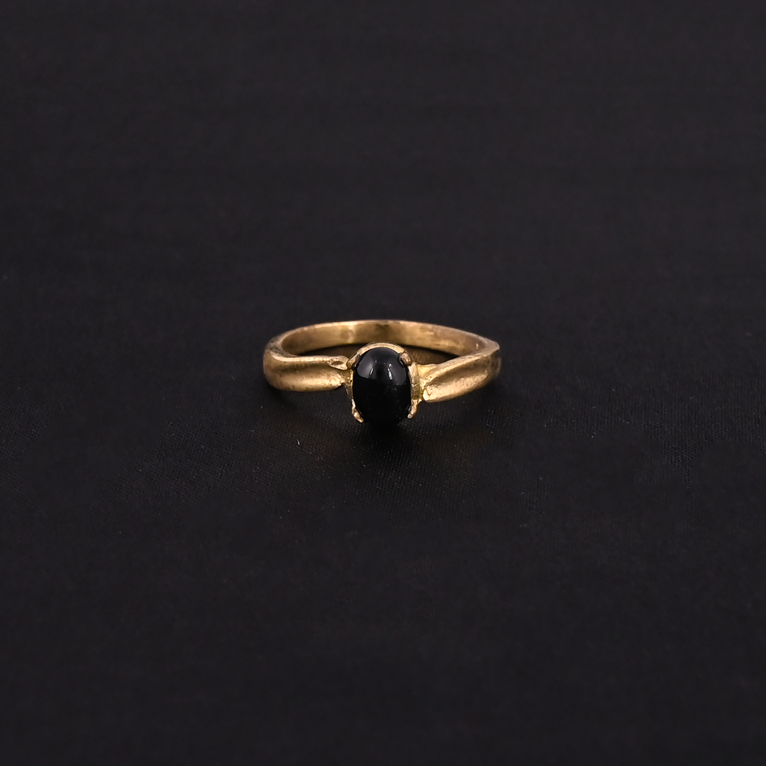 Black Centrepiece Stone With Vintage Gold Plated Ring