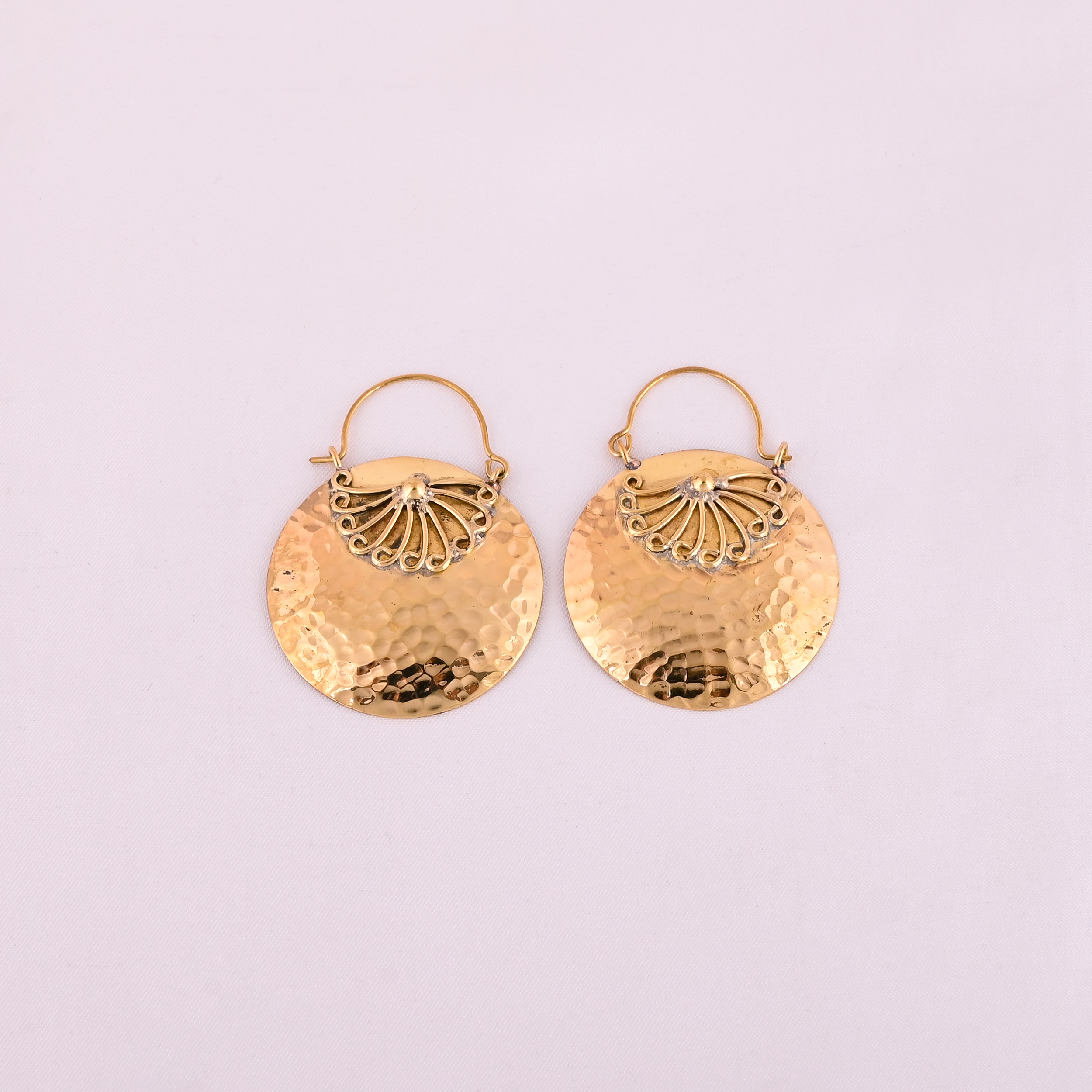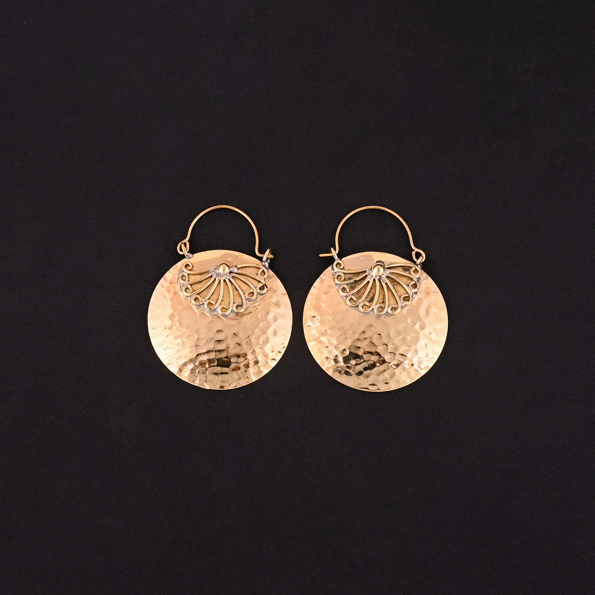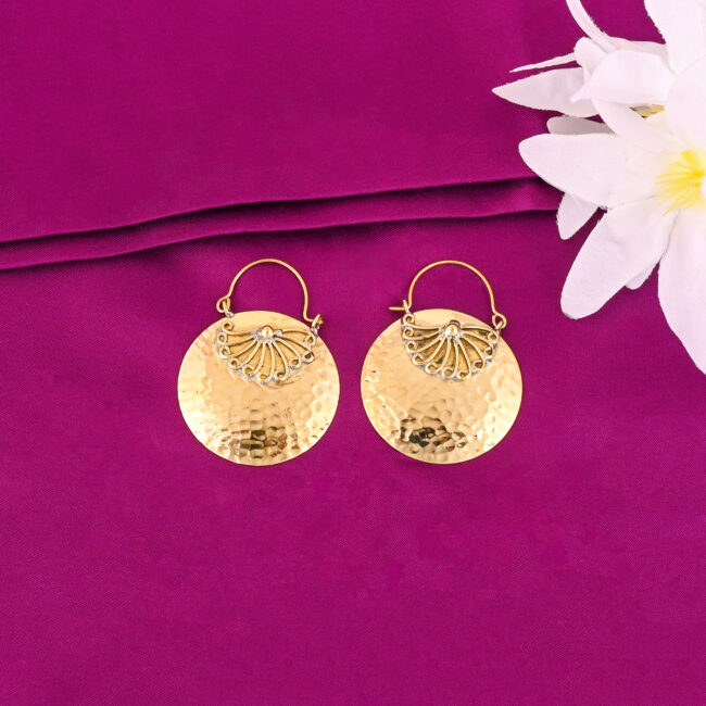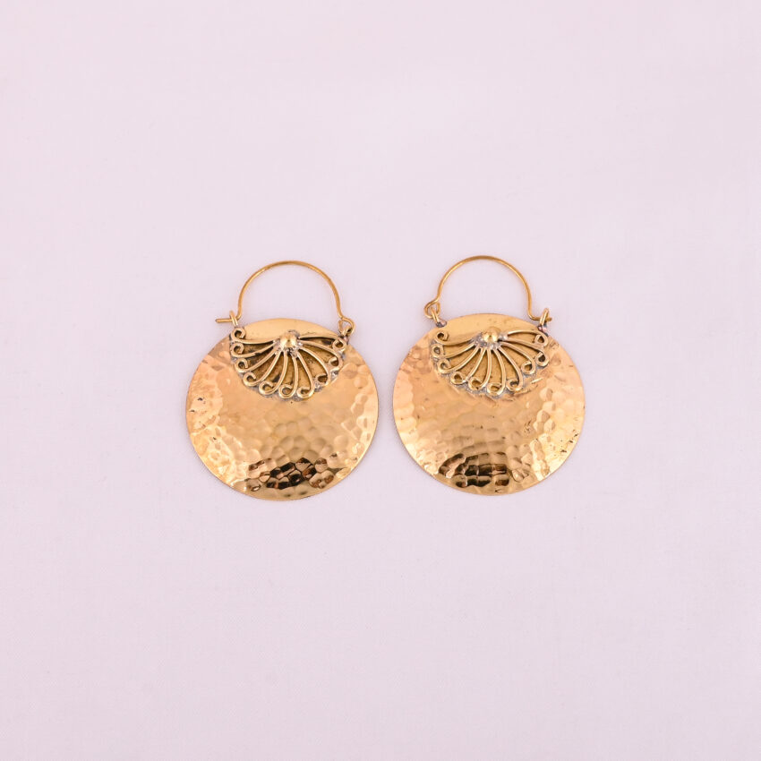Circular Textured Gold Drop Earrings
