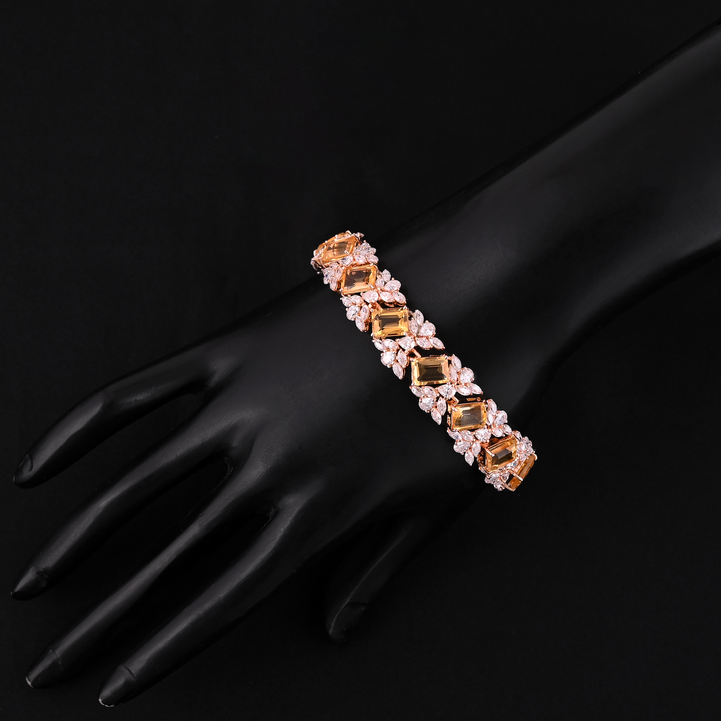 Each Citrine stone is carefully faceted in an octagon cut to showcase its rich golden-yellow hue, symbolizing joy, abundance, and positivity. The moissanite stones, known for their fiery brilliance and eco-conscious appeal, are precision-set to complement the warmth of the citrine and enhance the bracelet’s luxurious look.