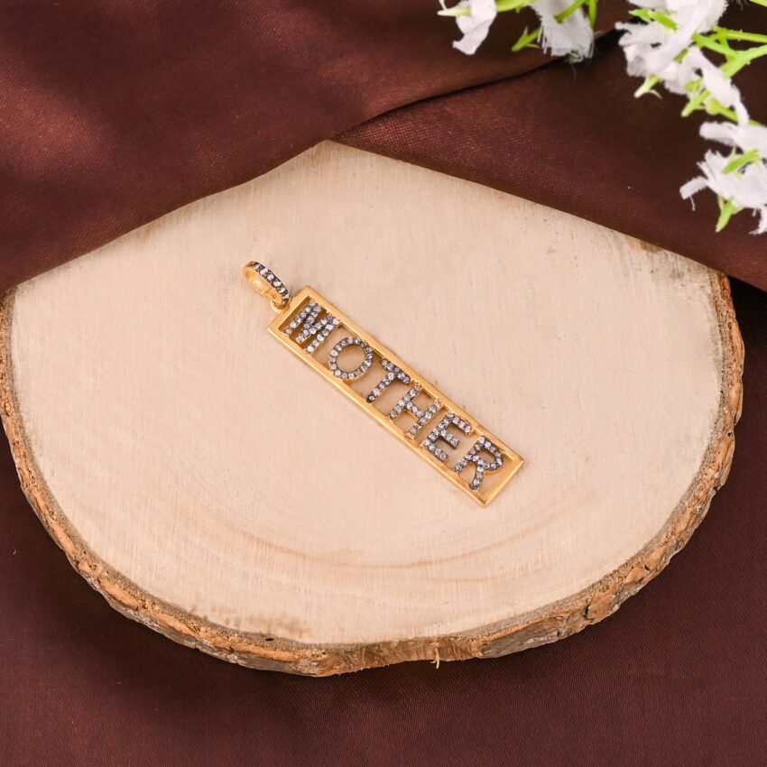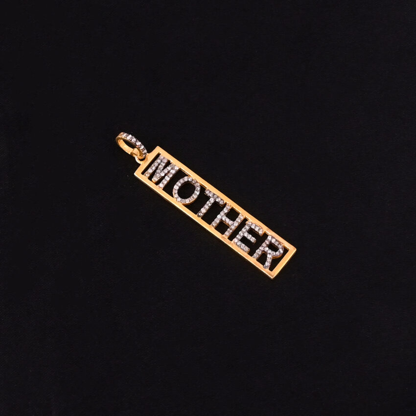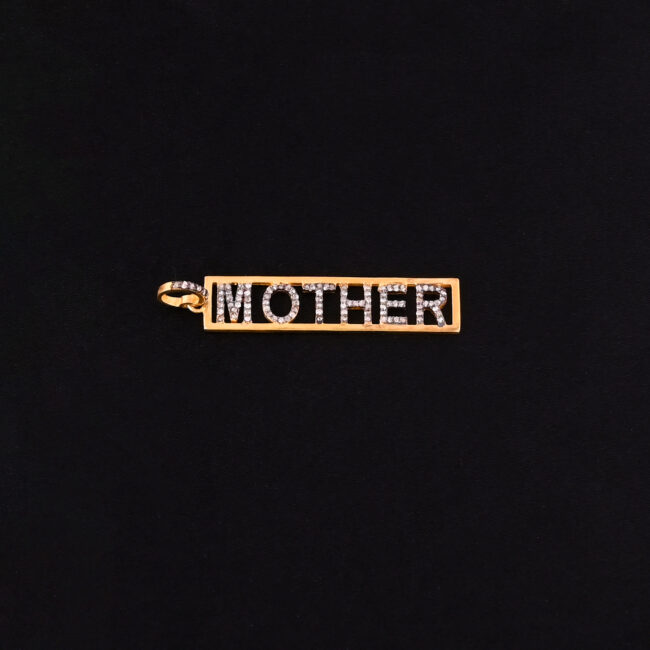 Celebrate the most important woman in your life with this stunning MOTHER pendant. Crafted with care, this rectangular gold-tone pendant features the word “MOTHER” in bold, cut-out letters encrusted with shimmering pavé-set diamonds. The glittering stones beautifully catch the light, making this piece both eye-catching and heartfelt. diaond weight 0.40cts