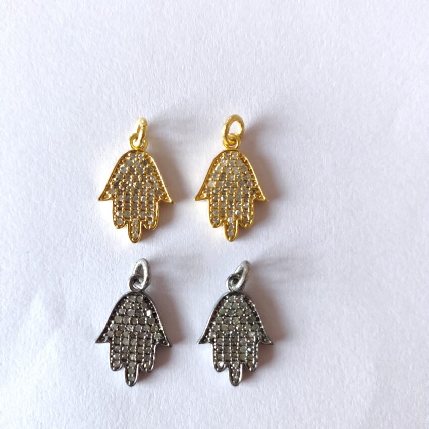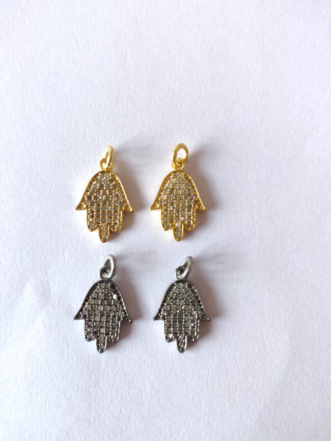 This stunning pendant features a detailed Hamsa hand design, adorned with sparkling diamonds that add a touch of glamour.