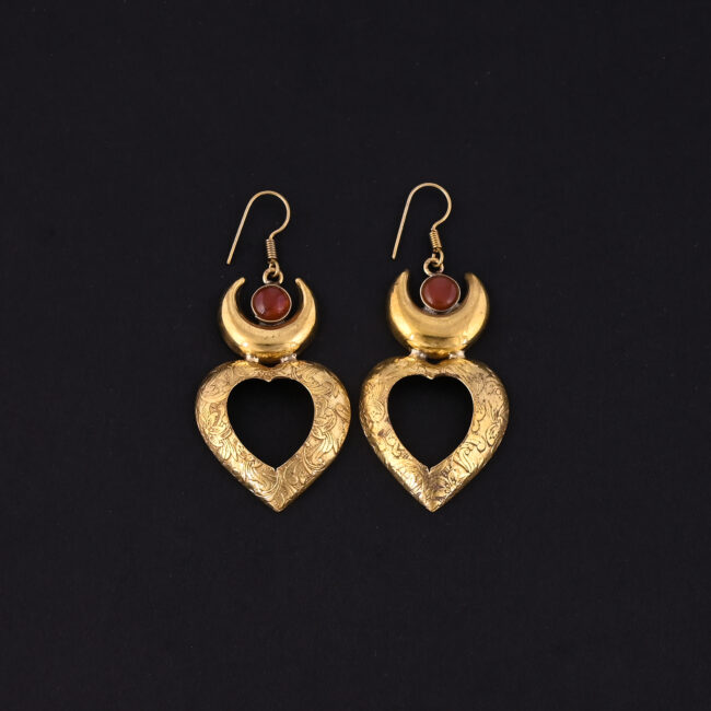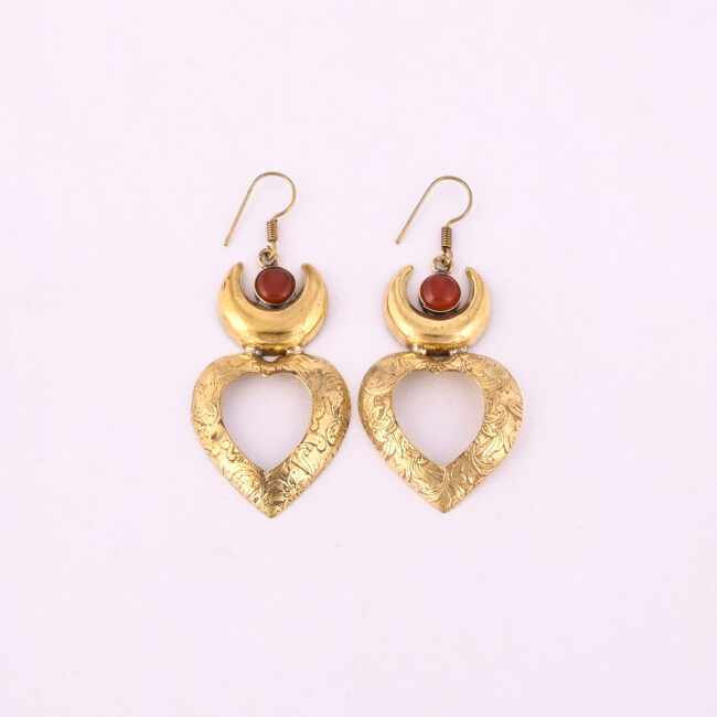 Be the first to review “Drop Earrings A crescent Moon Design With A red Gemstone And A Heart-Shaped Dangle Earrings 64x30MM Size” Cancel reply