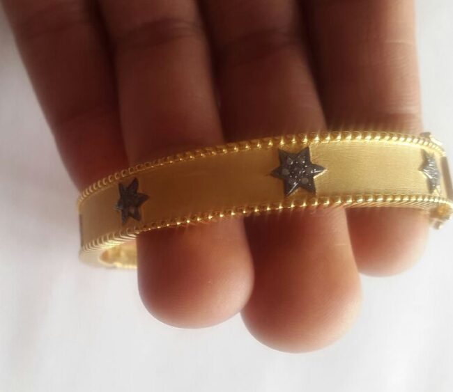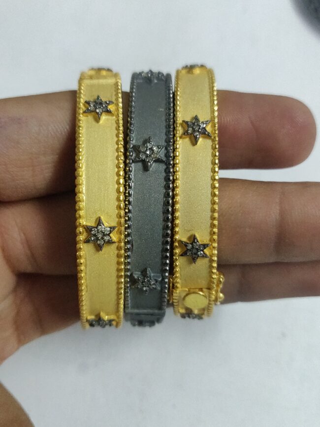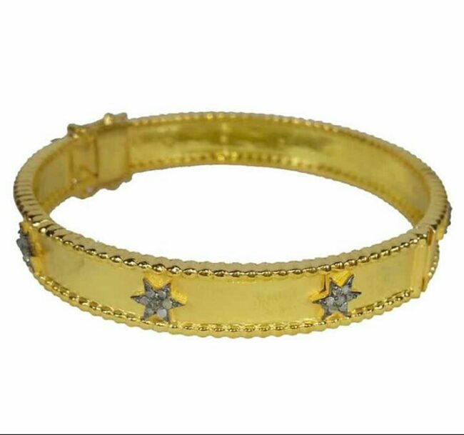 Be the first to review “Elegant Silver Gold-Plated Bangle with STAR Motif and Pave Diamond Stone” Cancel reply