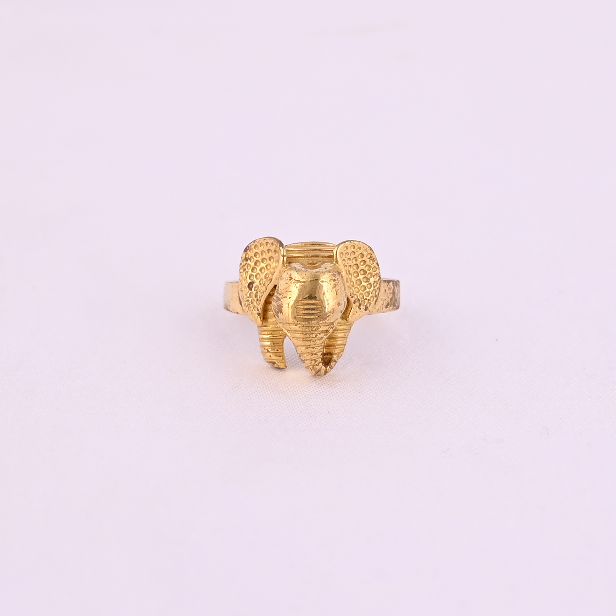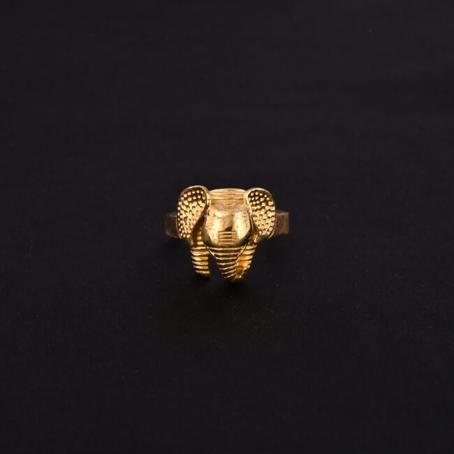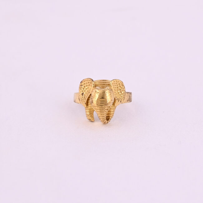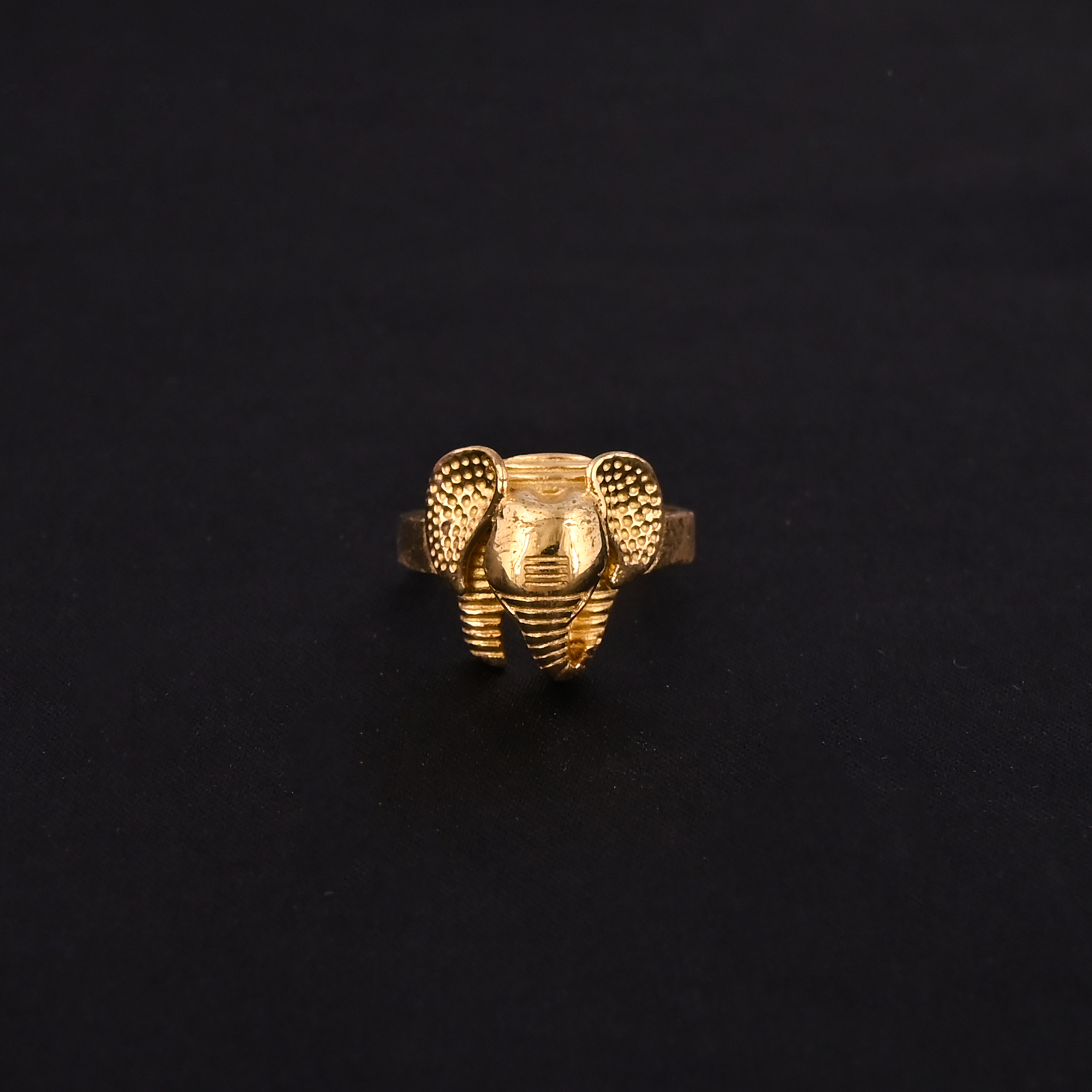 Bold gold-tone ring with a detailed elephant head design—symbolizing strength, wisdom, and protection. A striking and meaningful statement piece.