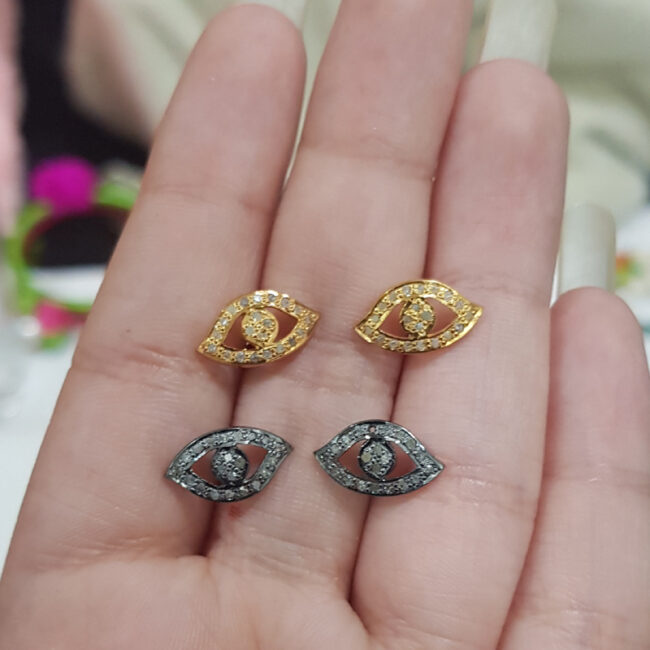 EVIL EYE Handmade Sterling Silver Pave Diamond Studs
