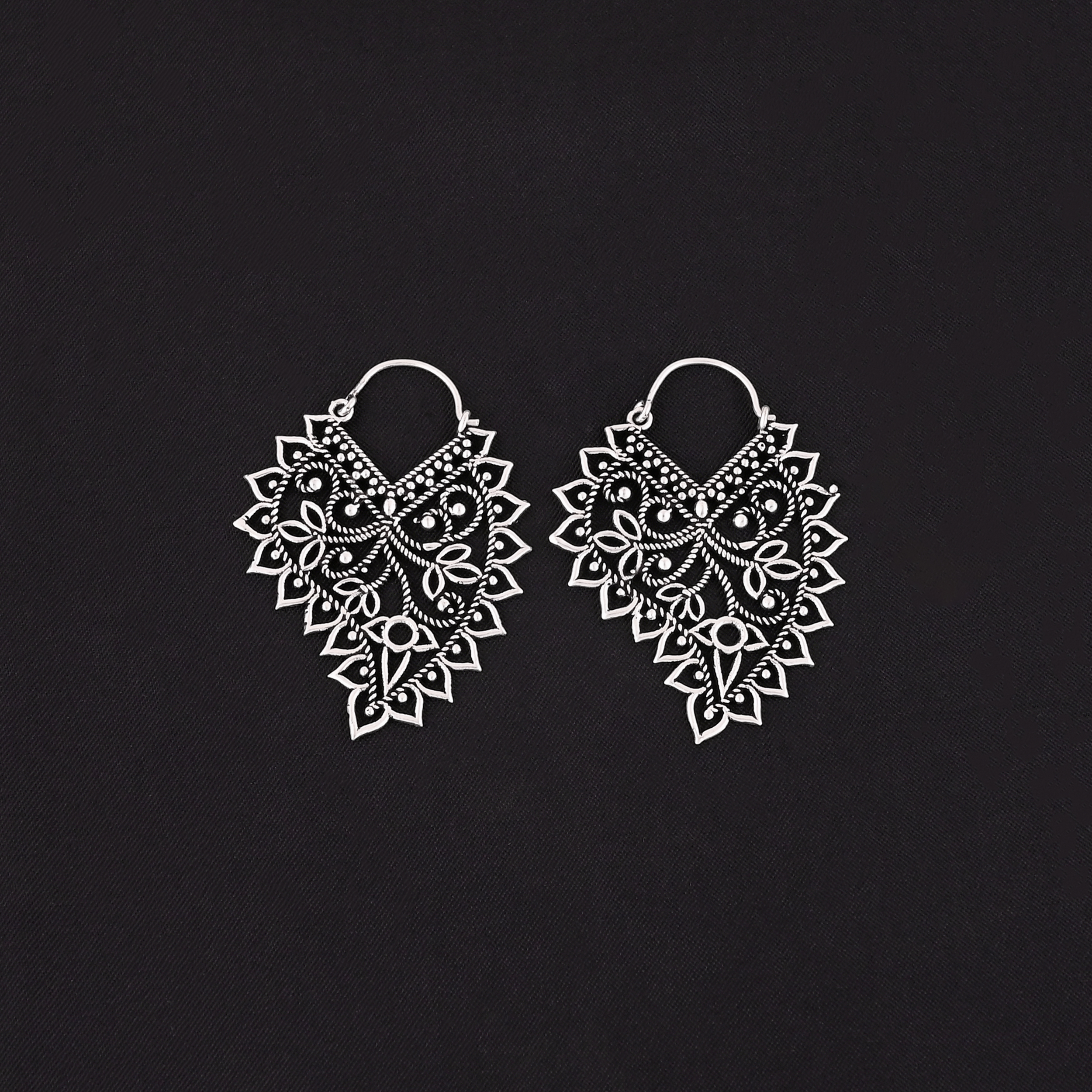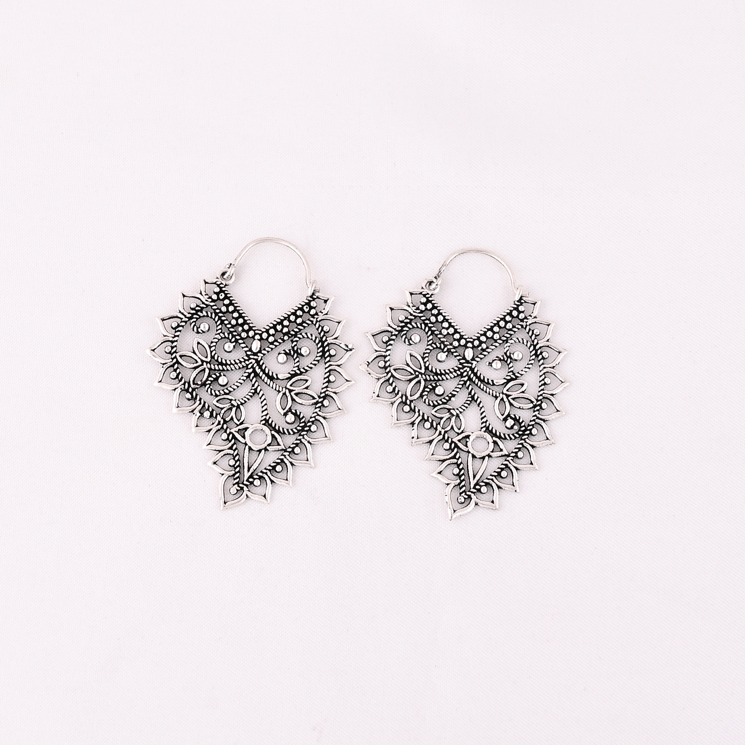 Embrace the charm of tradition with these beautifully crafted German silver earrings, known for their antique finish and intricate detailing. Made from high-quality German silver, these earrings exude vintage allure with a modern bohemian twist.