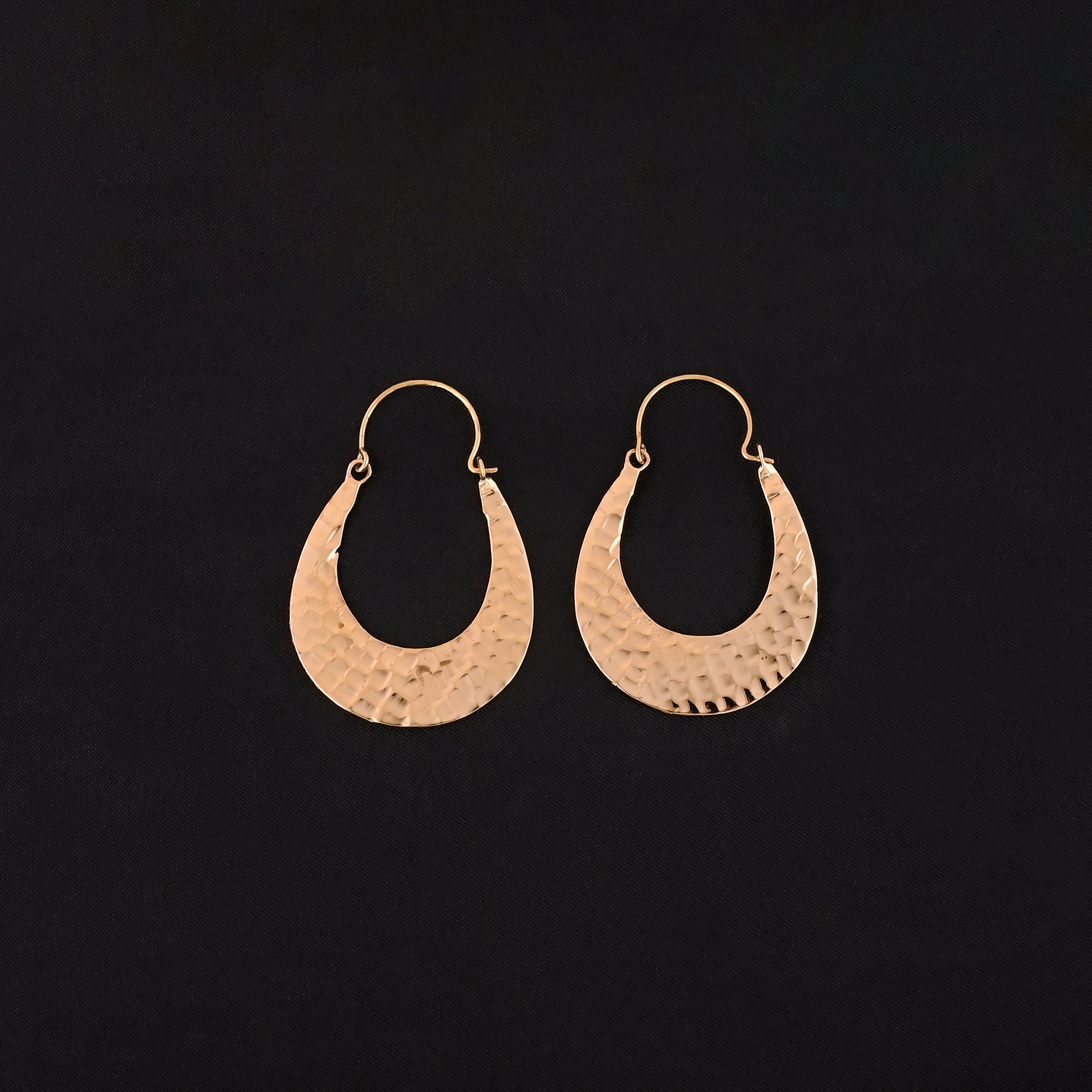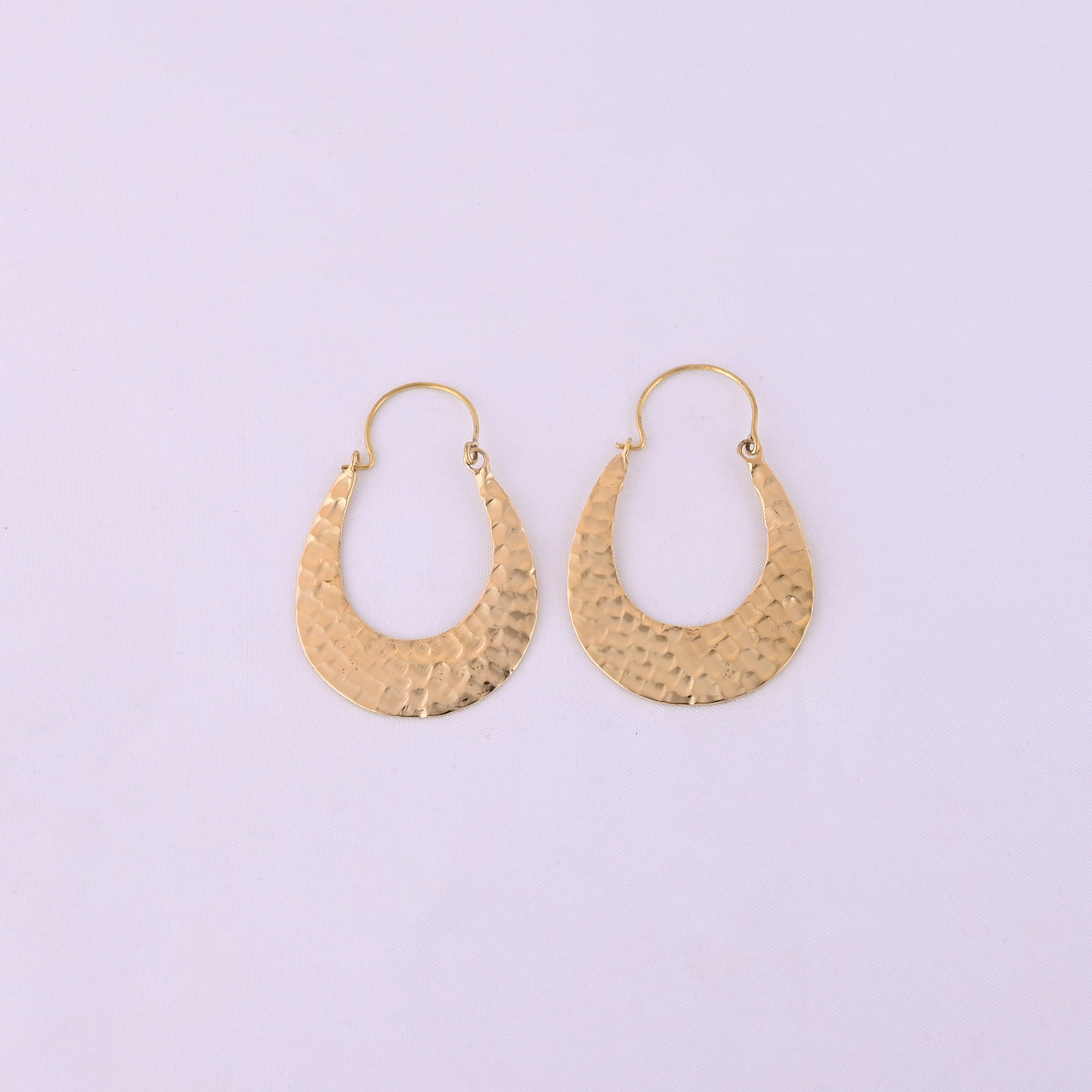 Gold Brass Classic Hammered Hoop Earrings 50x35MM Size