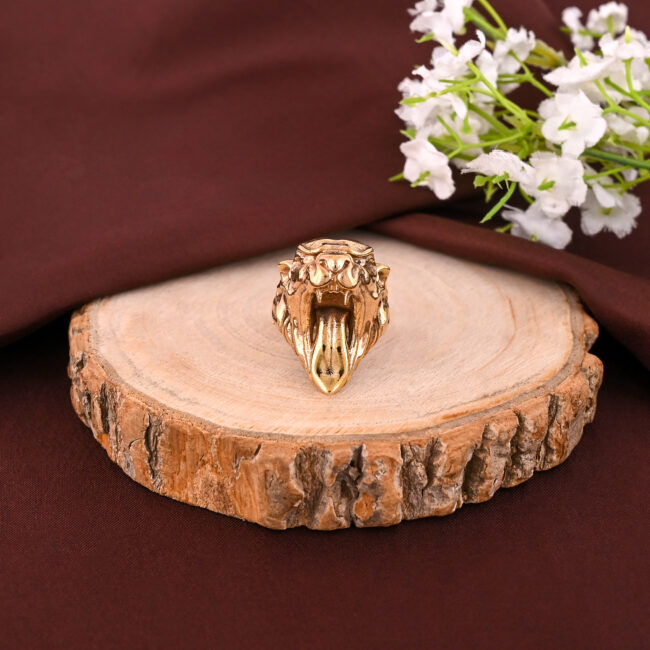 Gothic Tiger Ring Band – Bold and untamed, this gold-plated ring features a fierce tiger motif infused with gothic artistry. The intricate detailing captures the tiger’s strength and intensity, while the polished gold finish adds a touch of regal elegance.
