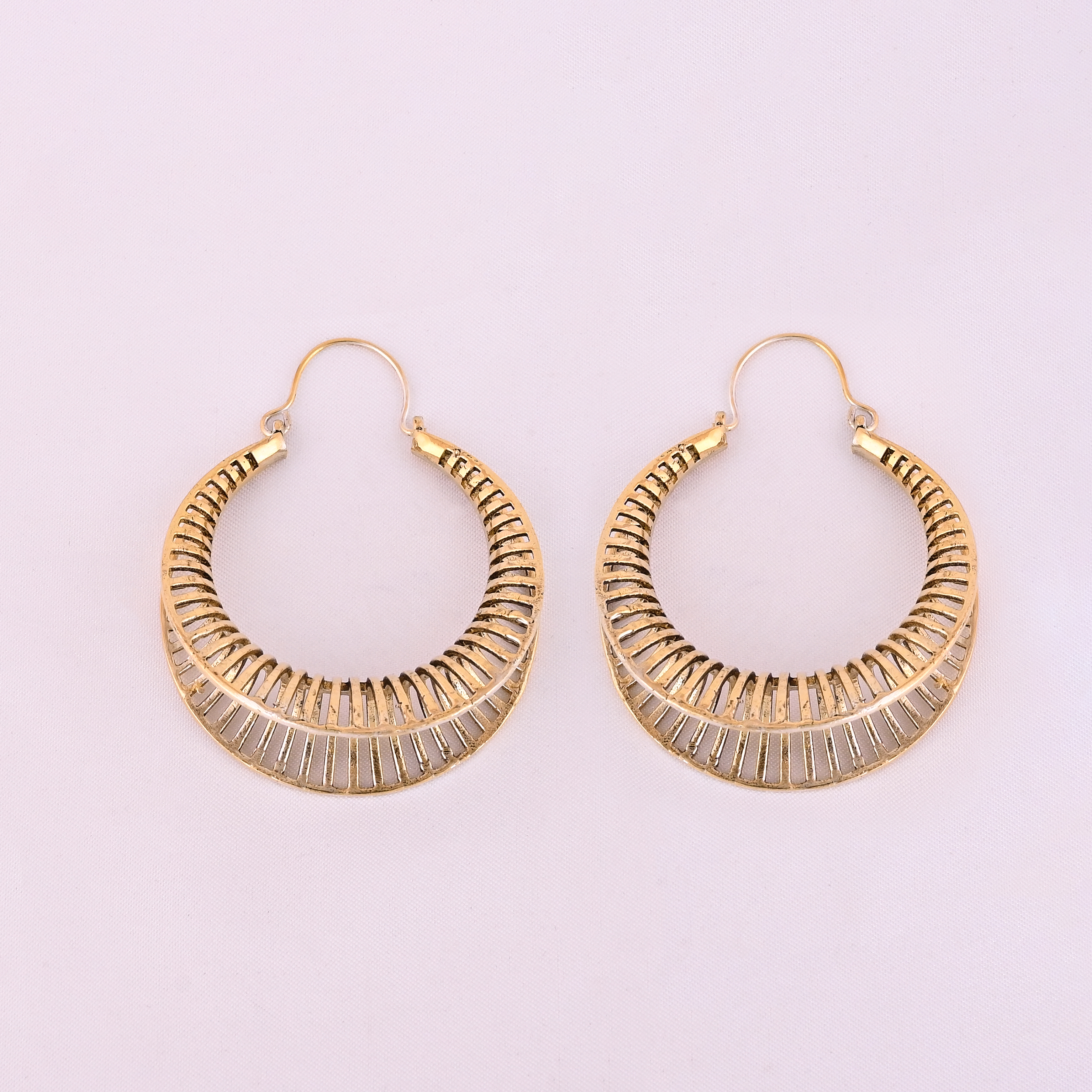The warm gold tone and airy design make these hoops a standout accessory, perfect for festivals, everyday styling, or adding a touch of wanderlust to any outfit.
