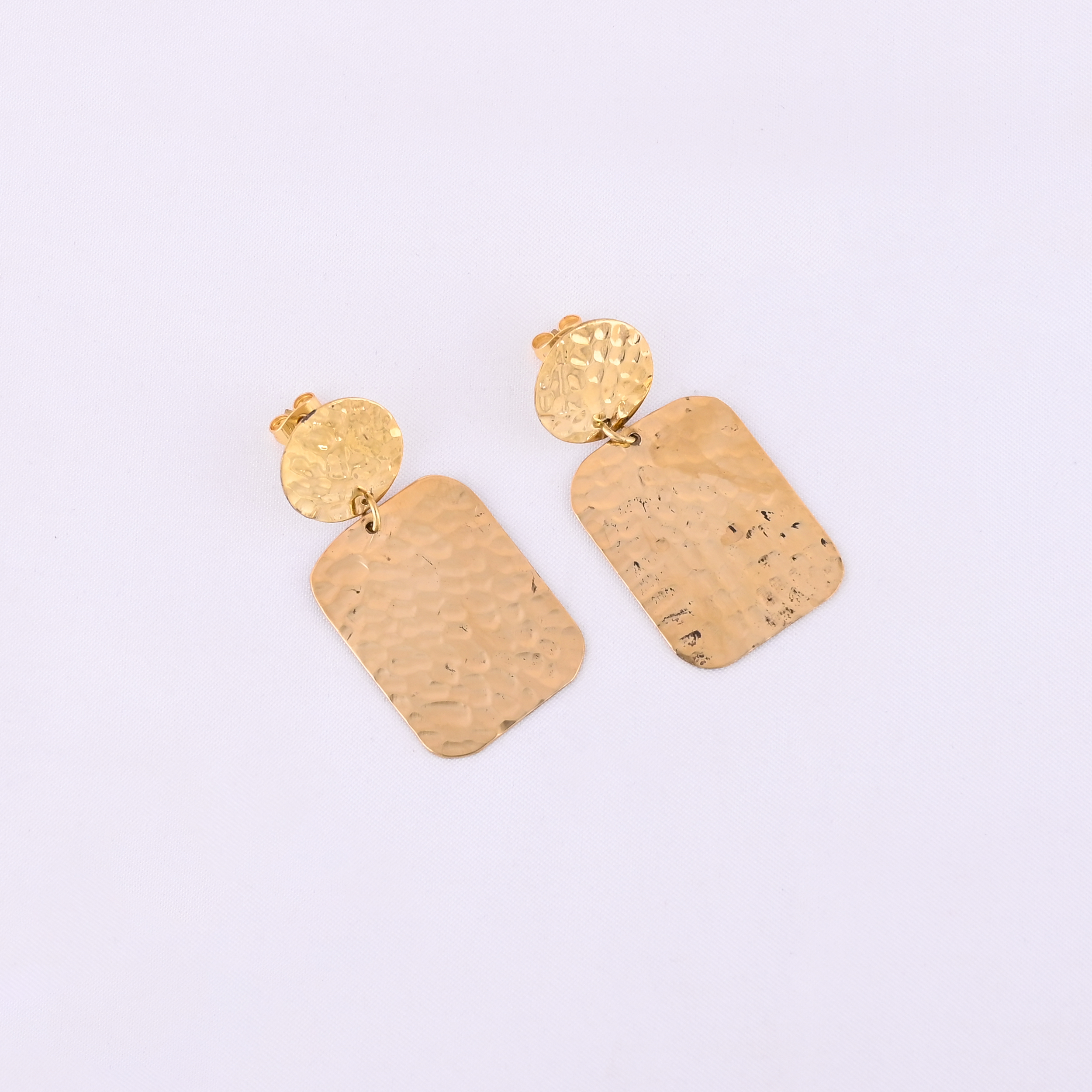 Handmade with precision, the clean geometric lines offer a refined yet bold statement, while the warm brass tone exudes earthy sophistication. Lightweight and comfortable, these petite drops are perfect for everyday wear or for subtly elevating your evening look.