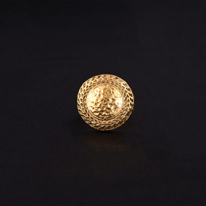 A captivating mandala-inspired gold plated ring with intricate filigree details, blending tradition with modern elegance
