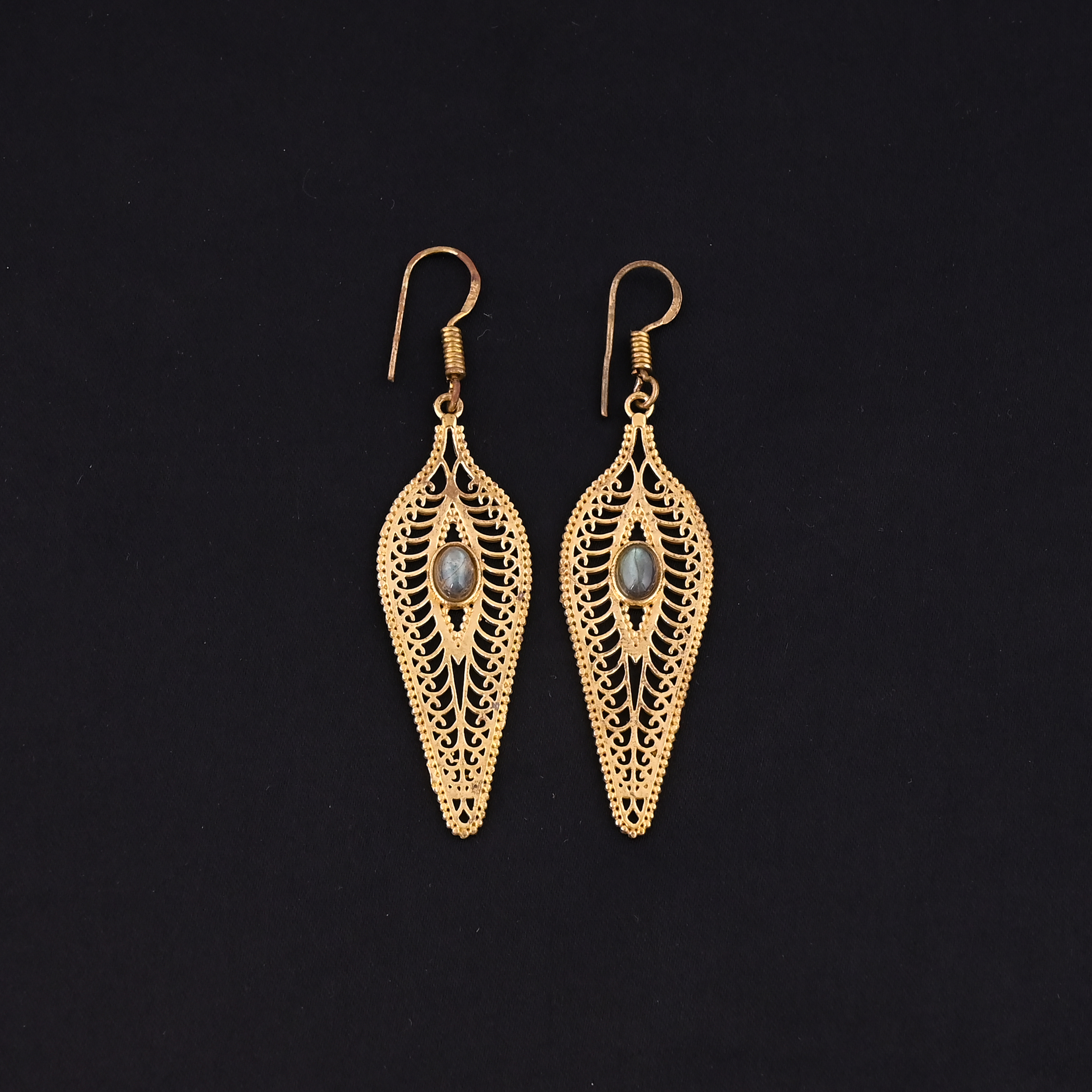 Radiating ethereal beauty, these Moonstone Dangle Earrings are designed to captivate. Featuring luminous, natural moonstones that shimmer with an otherworldly glow, these long earrings gracefully sway with every movement, creating a delicate yet bold statement.