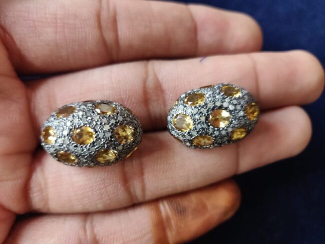 This jewelry is ideal for those seeking a piece that is both luxurious and timeless, perfect for special occasions, or as a stunning statement accessory to elevate any outfit. The rich, natural color stones paired with the sparkle of pave diamonds make this a standout addition to any jewelry collection.