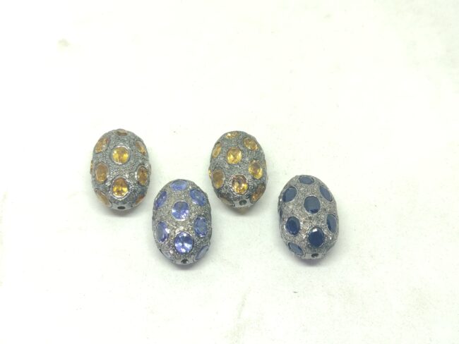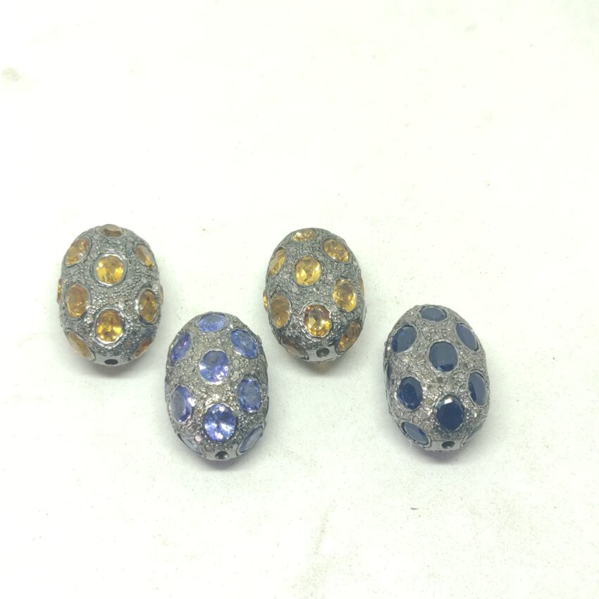 Natural Colour Stone Sterling Silver Pave Diamond 24x14MM Size Black Vermeil