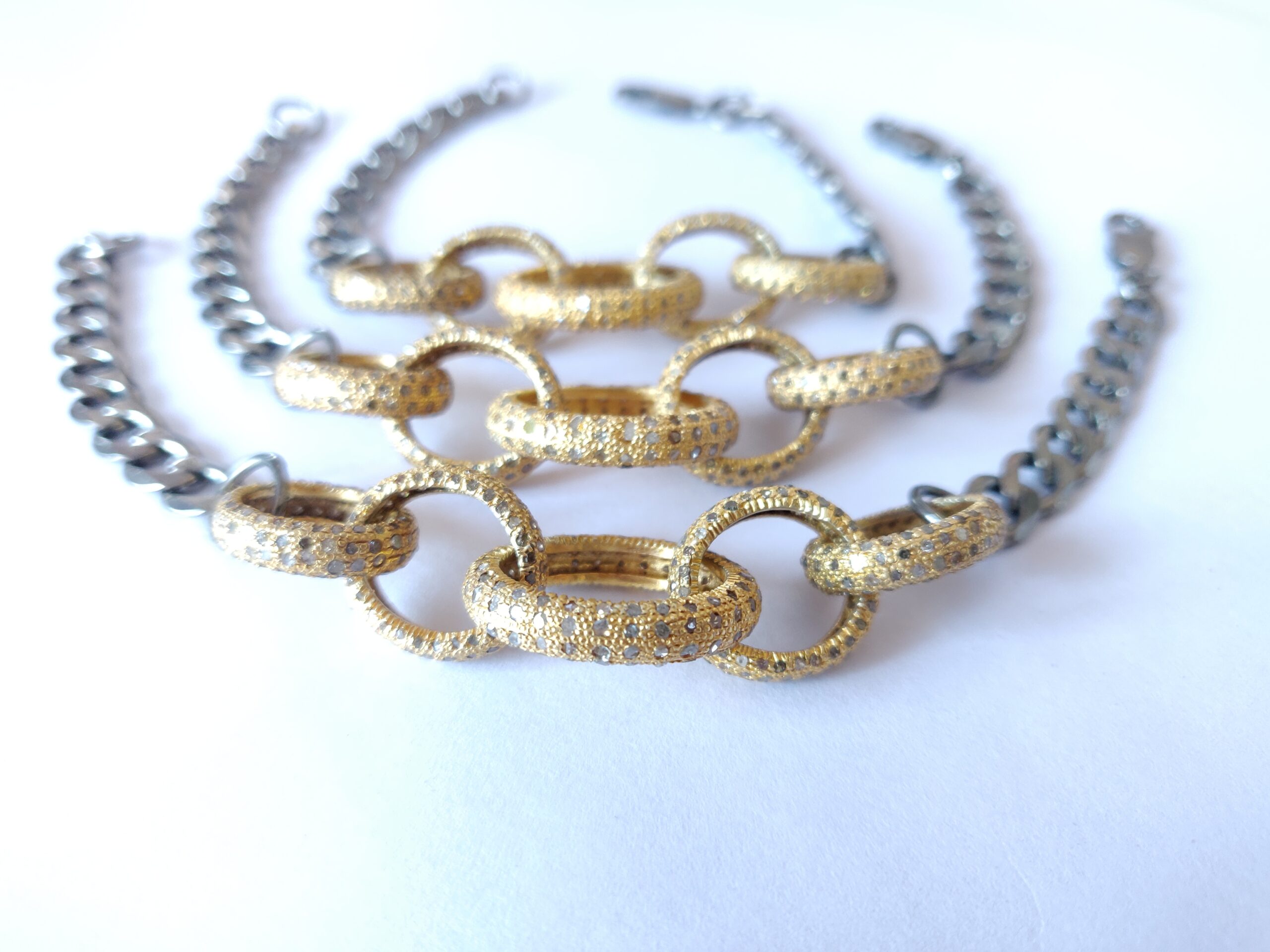 A pavé diamond link bracelet merges the two: each link is adorned—often on all visible surfaces—with densely arranged pavé-set diamonds. This design delivers both structural detail and a brilliant sparkle.