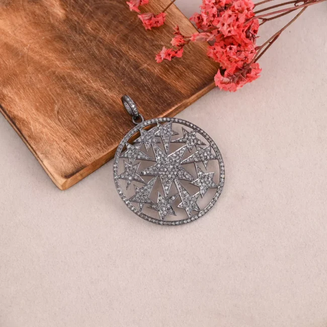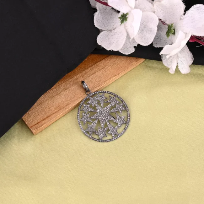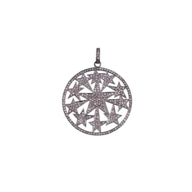 Embrace the celestial beauty with this stunning oxidized silver pendant adorned with a mesmerizing constellation of diamonds. The intricate starburst design, crafted with precision, captures the magic of the night sky.