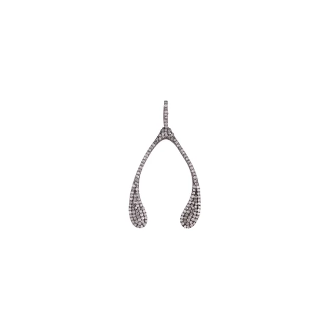 Make a wish with this charming oxidized silver wishbone pendant, adorned with sparkling diamonds. A perfect accessory for those who believe in a little magic.