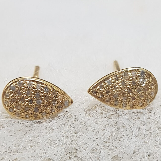 PEARS Large Handmade Sterling Silver Pave Diamond Studs 11x6MM Size