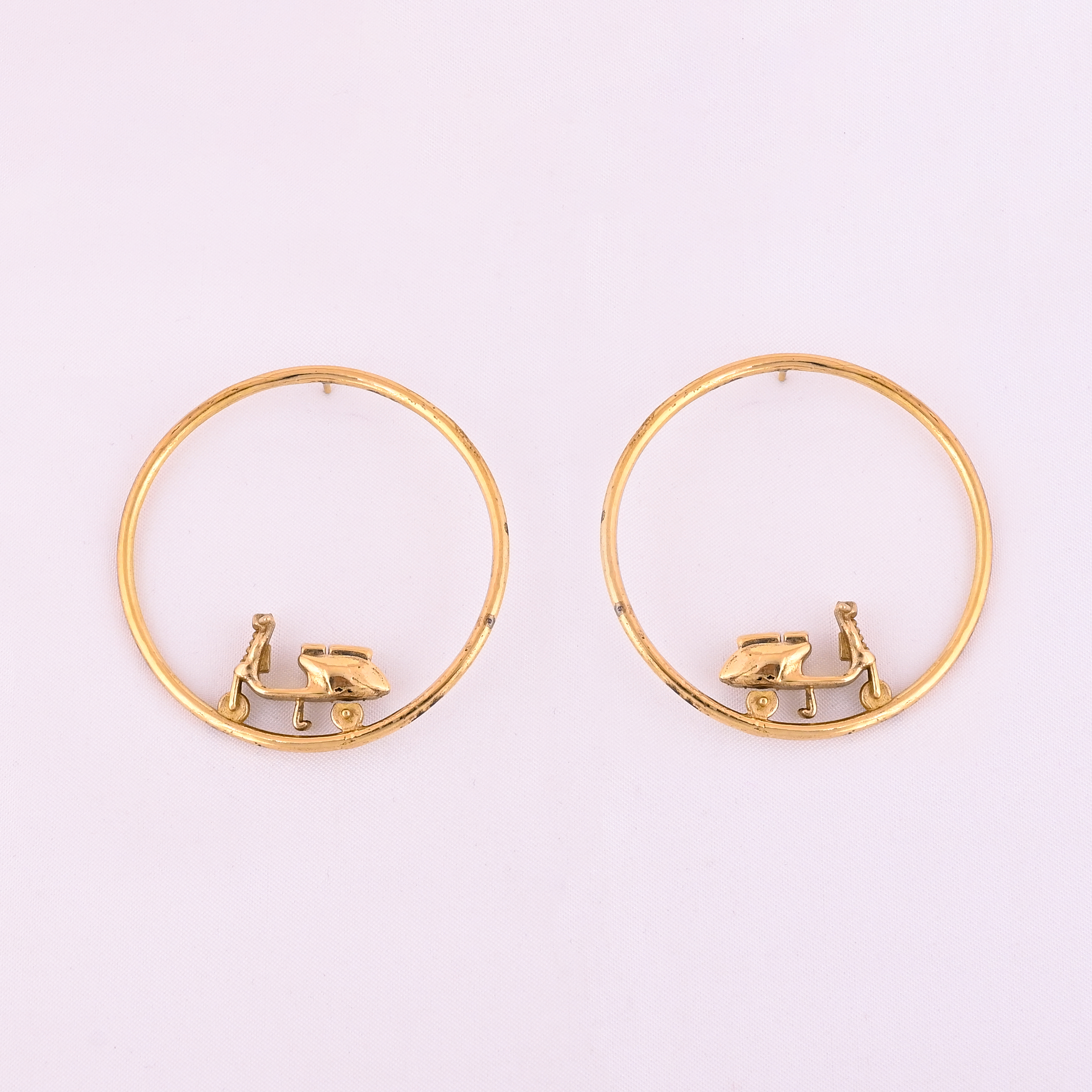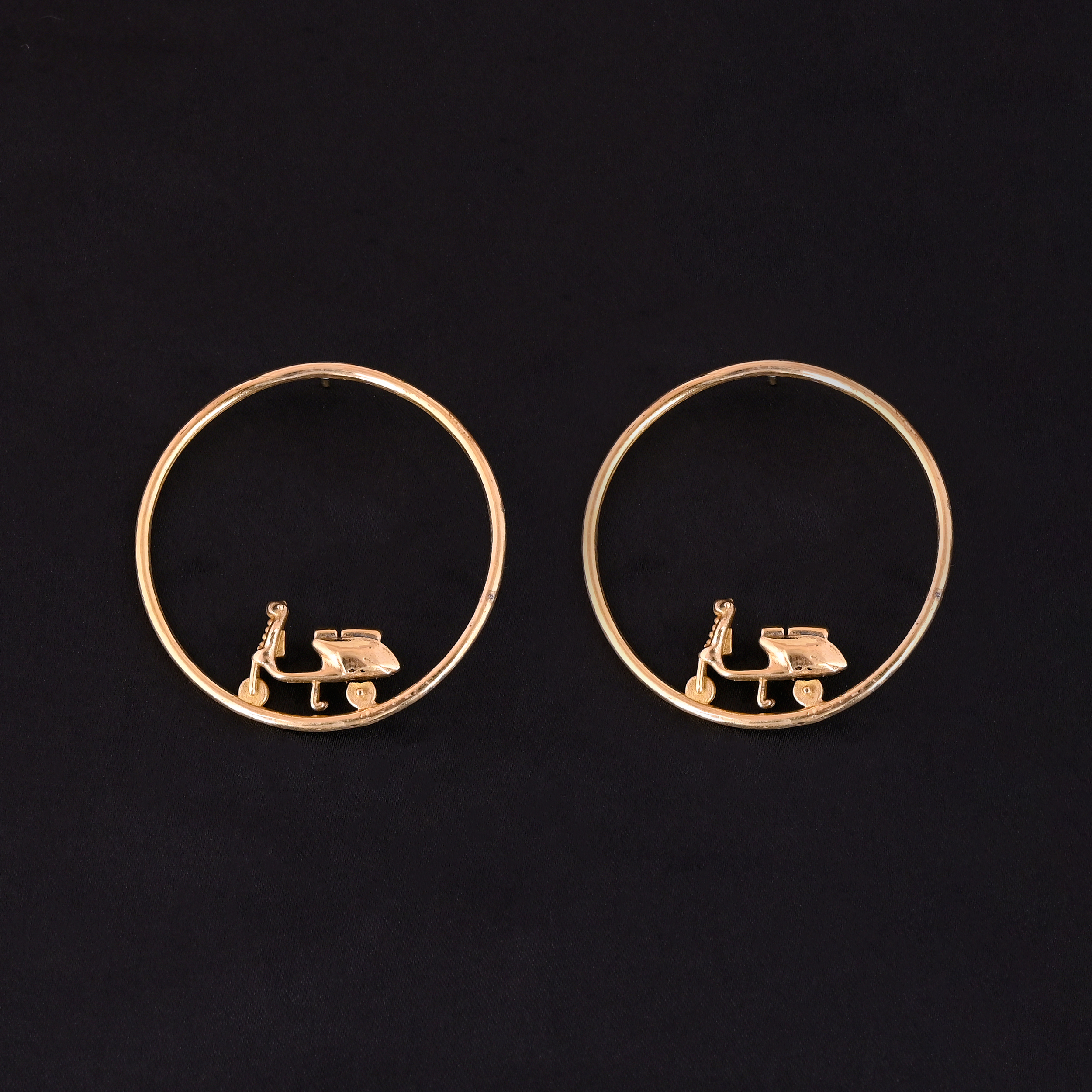 Add a playful twist to your accessory game with our Scooter in the Ring Earrings—a whimsical blend of charm, motion, and modern flair. These unique earrings feature a miniature scooter suspended inside a sleek metallic hoop, turning a simple drop earring into a delightful conversation starter.