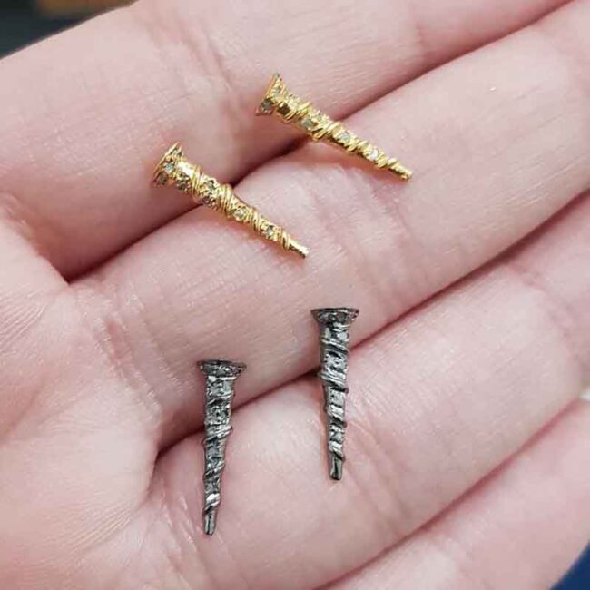 Whether you’re expressing your rebellious side or adding a modern edge to your look, these studs are conversation starters. The hand-set diamonds catch the light with every turn, while the sterling silver base ensures long-lasting durability and shine.