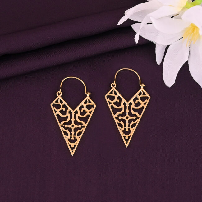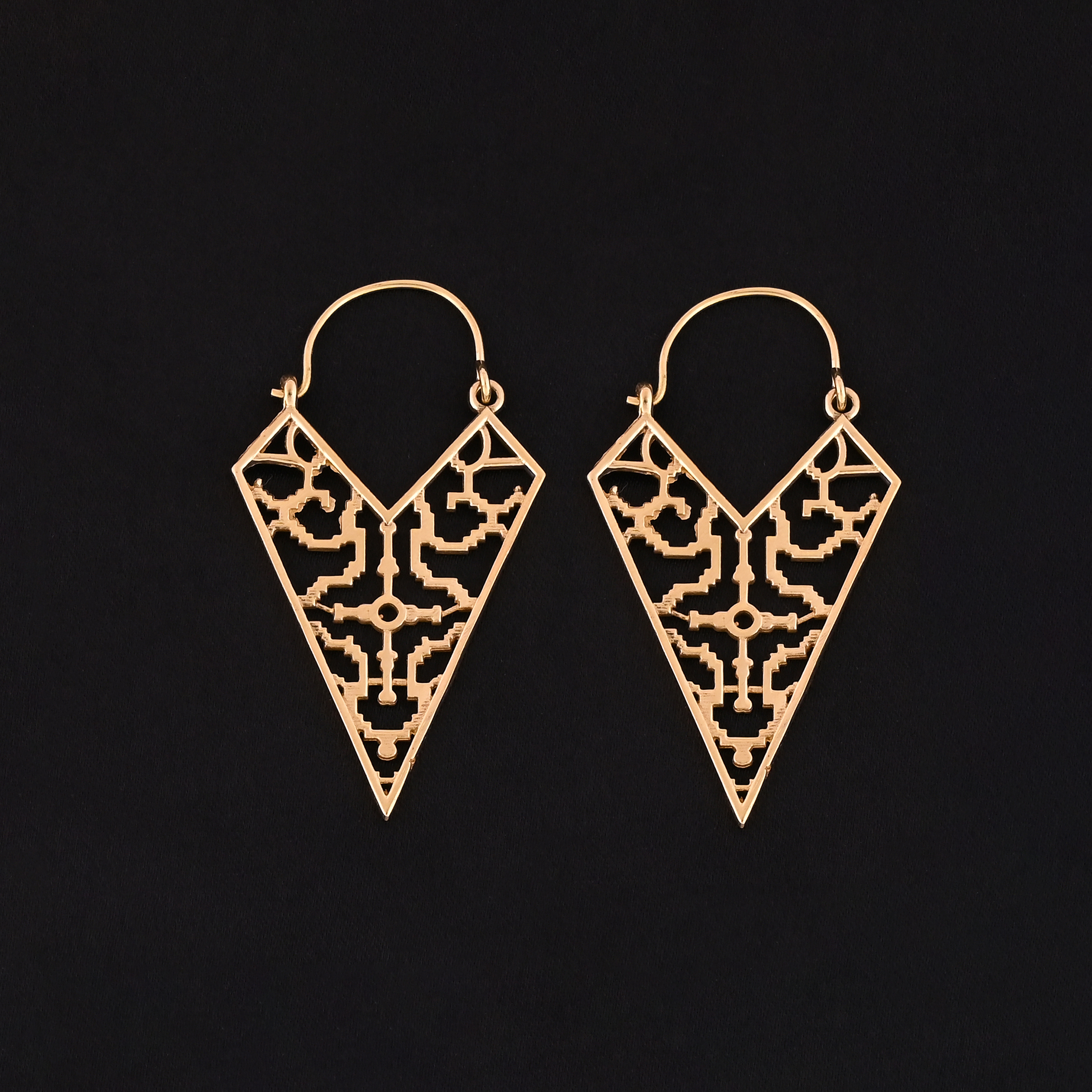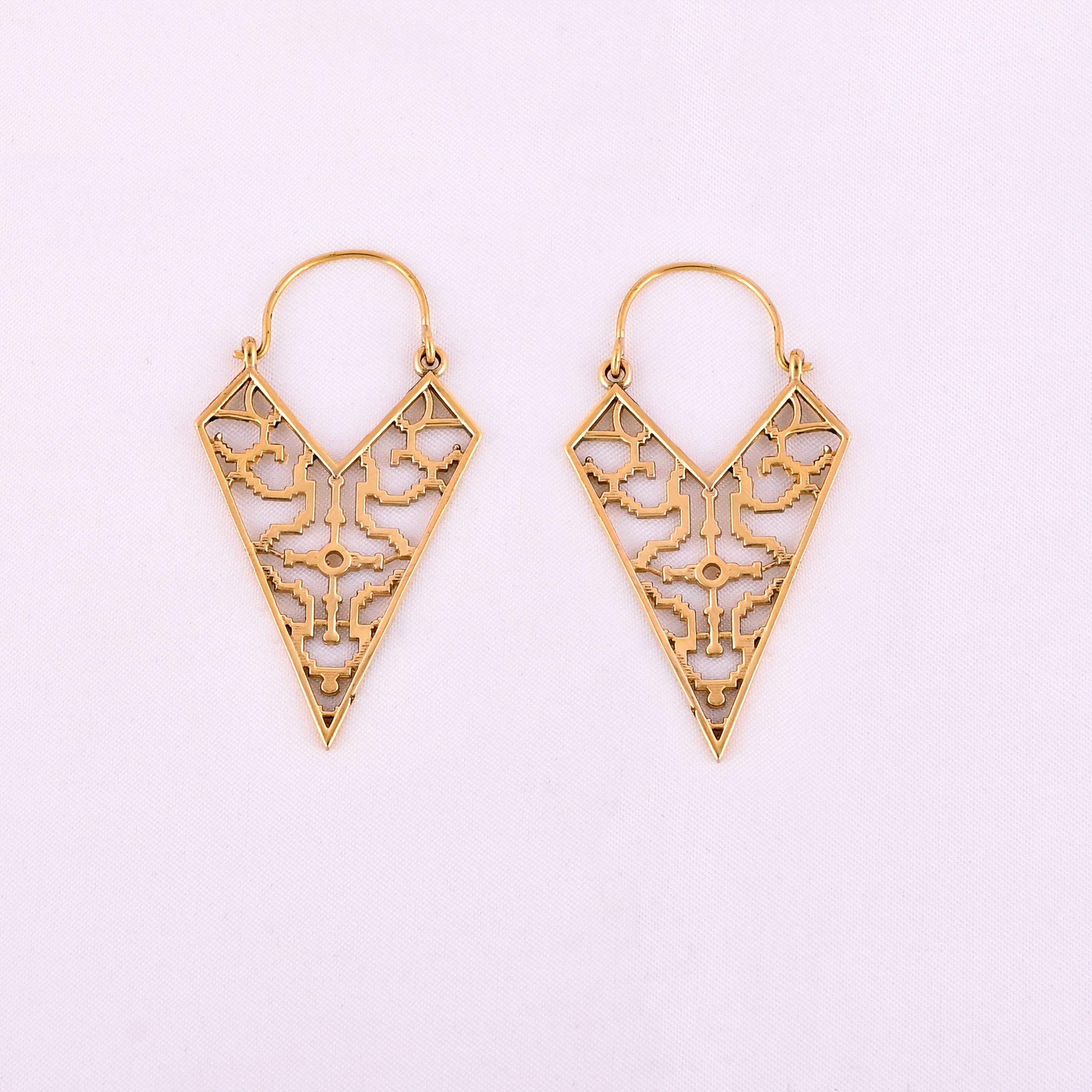 Inspired by the rich artistic traditions of the Shipibo-Conibo people of the Peruvian Amazon, the SHIPOBO Golden Pointed Hoops Earrings blend sacred geometry with bold, modern design. These statement hoops feature sharp, elegant points and a radiant gold finish — a fusion of indigenous symbolism and urban sophistication.