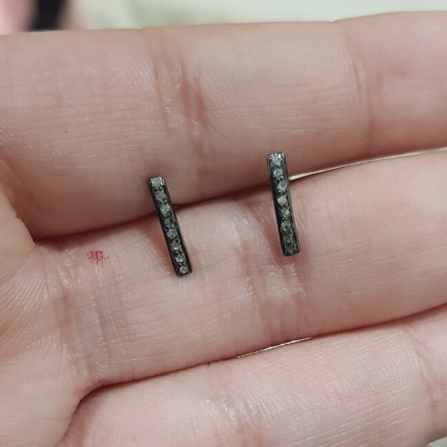 SINGLE LINE Studs Sterling Silver Pave Diamond Earrings
