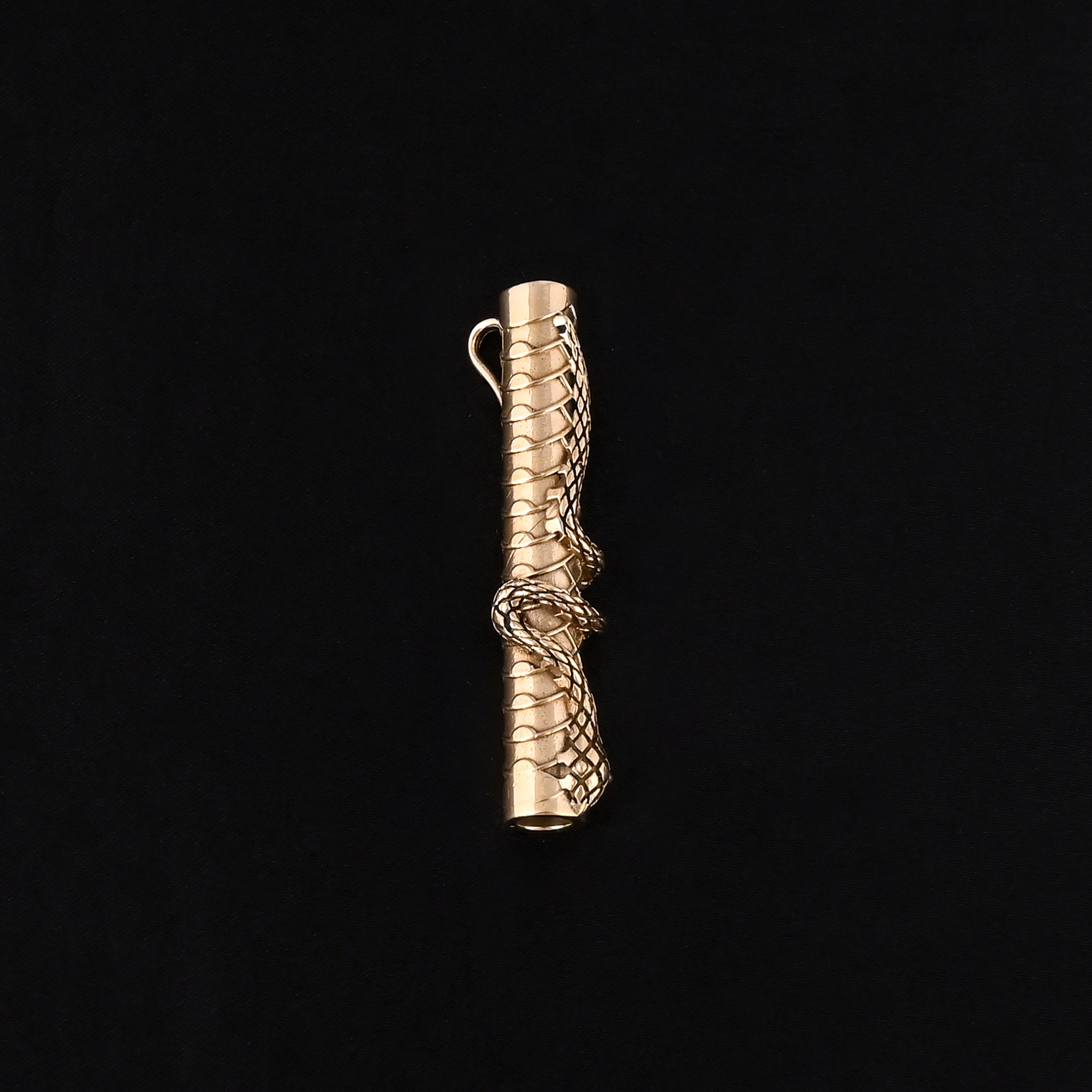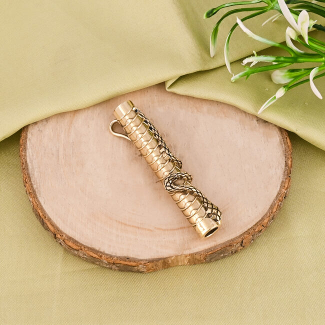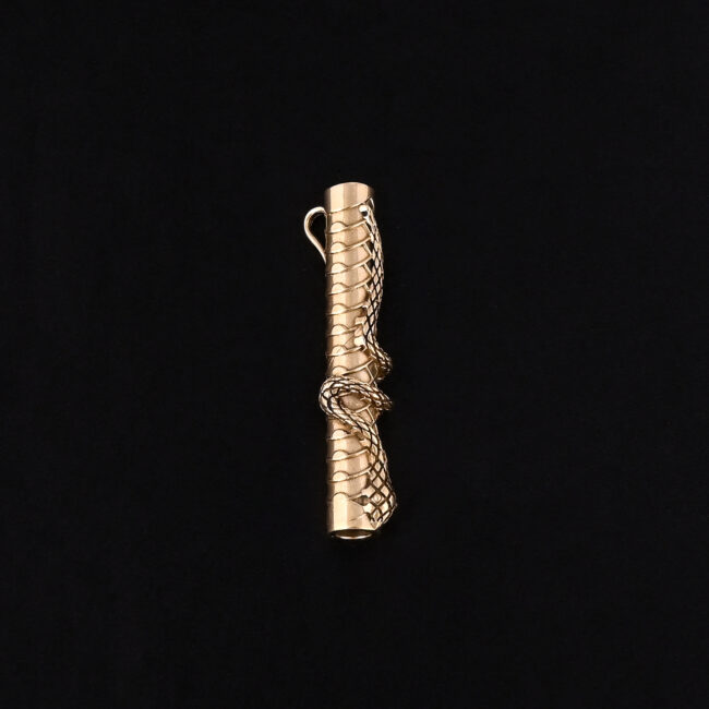 Mysterious and finely crafted, this snake snuff pendant is a striking example of wearable art with both symbolic depth and practical history. Designed in the form of a coiled serpent, the pendant features a hidden compartment traditionally used to carry powdered snuff — a discreet luxury once popular in past centuries.