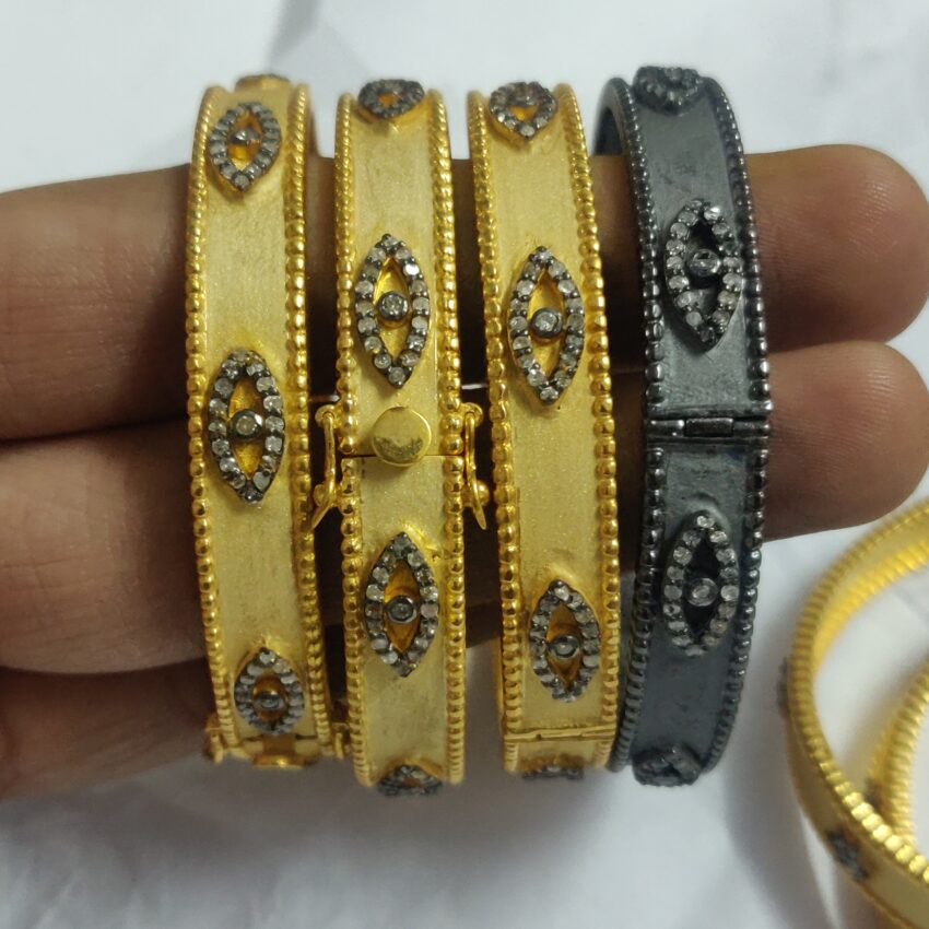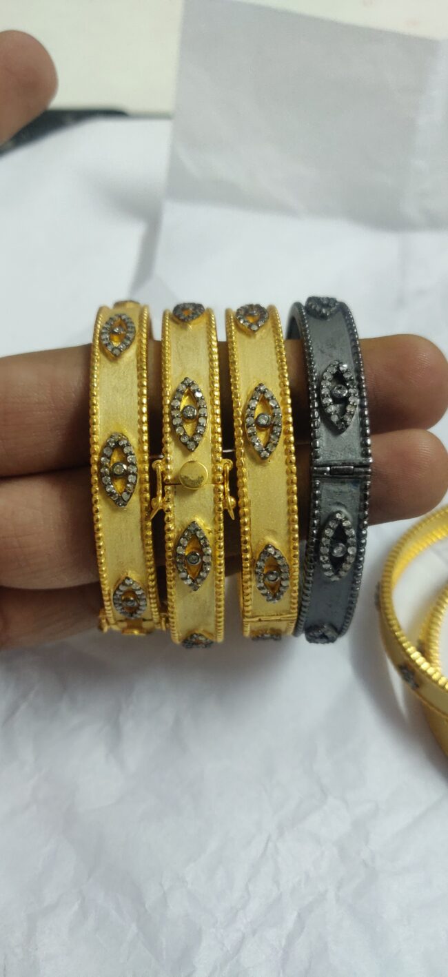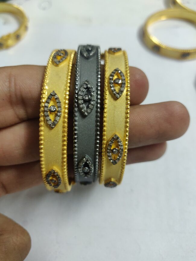 Be the first to review “Sterling Silver Gold & Black Matte Finish Bangles with EVIL EYE Motif” Cancel reply