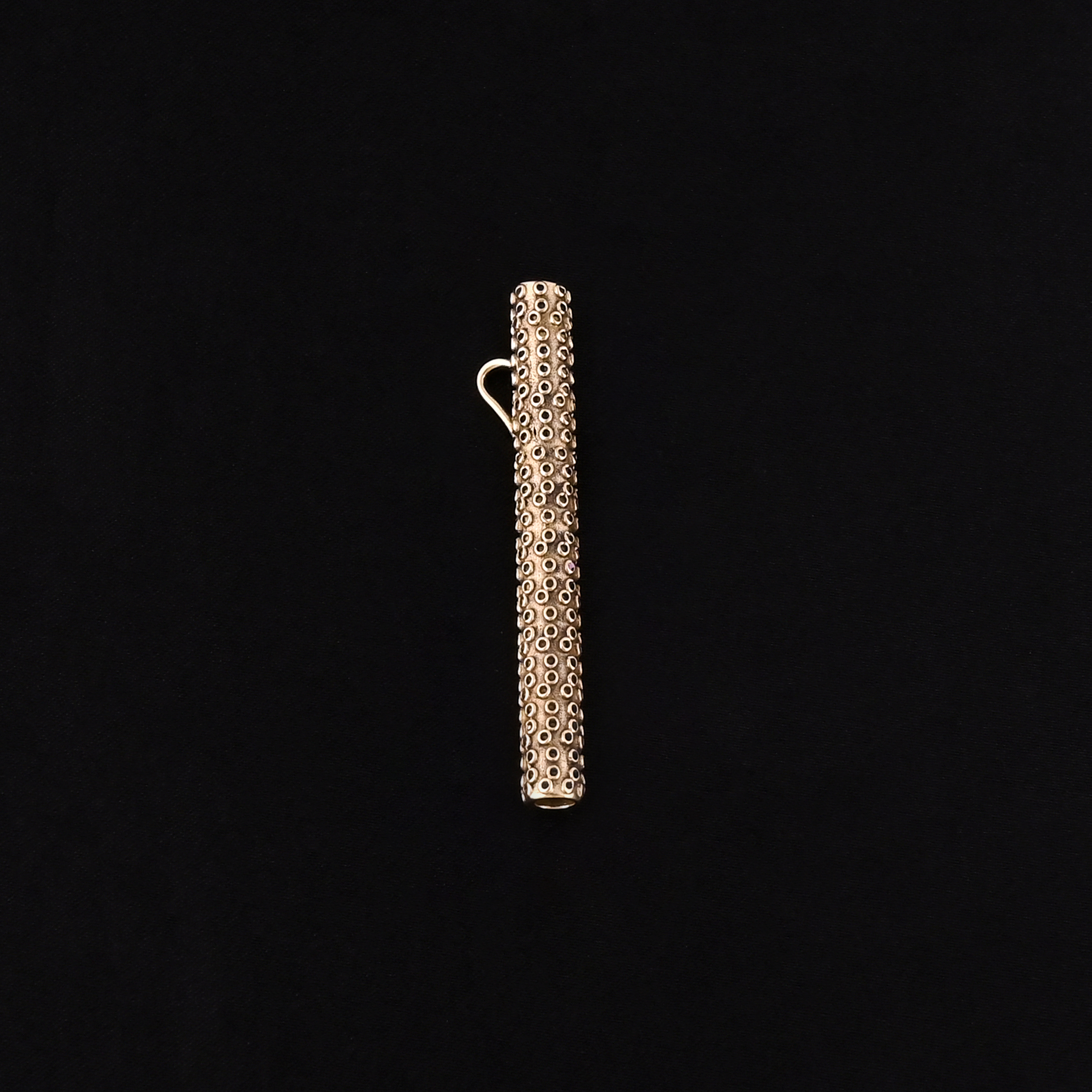 Elegant and evocative, this vintage gold-plated snuff pendant is a rare blend of ornamental beauty and historic function. Designed to discreetly hold powdered snuff or tiny personal keepsakes, the pendant reflects a time when practicality and adornment went hand in hand.