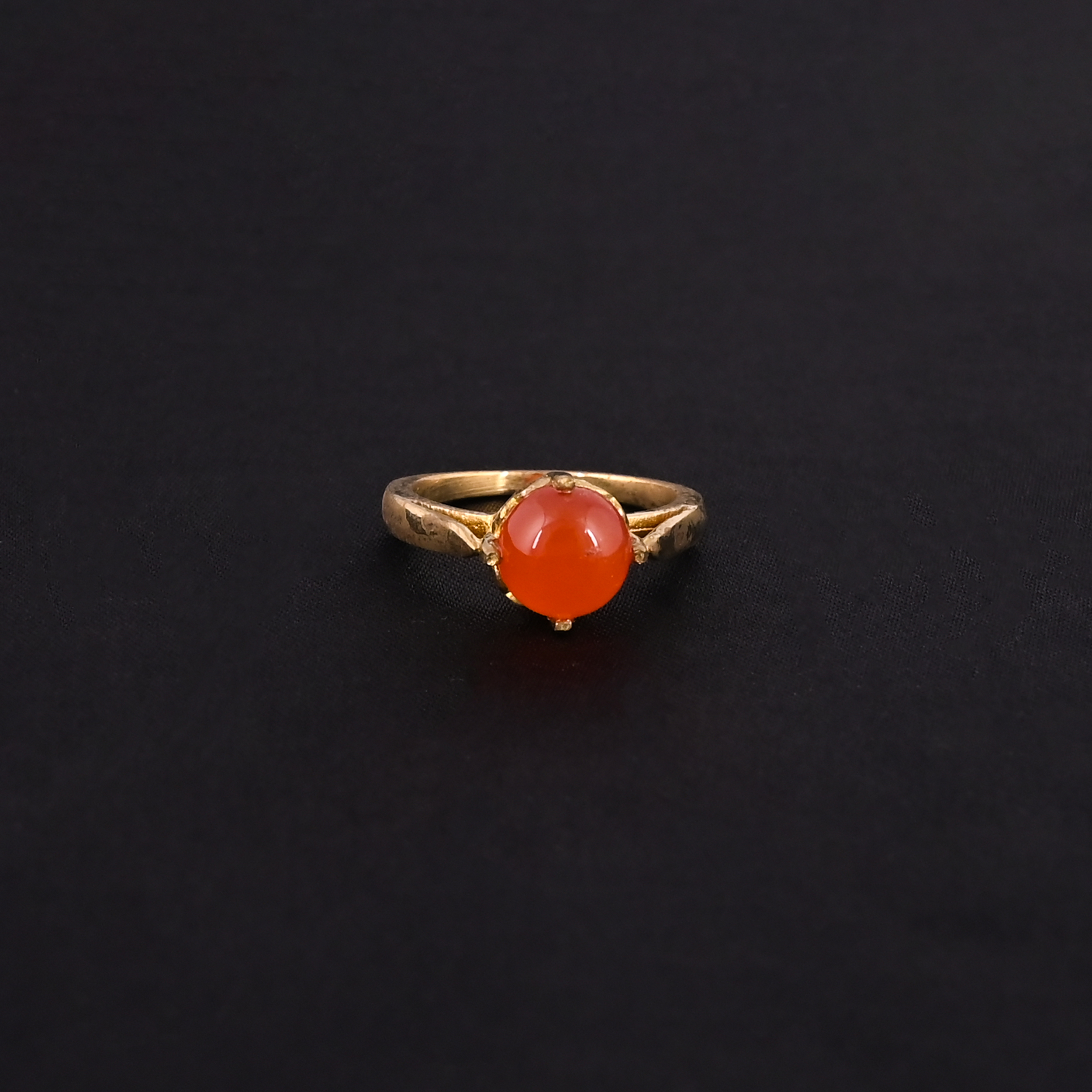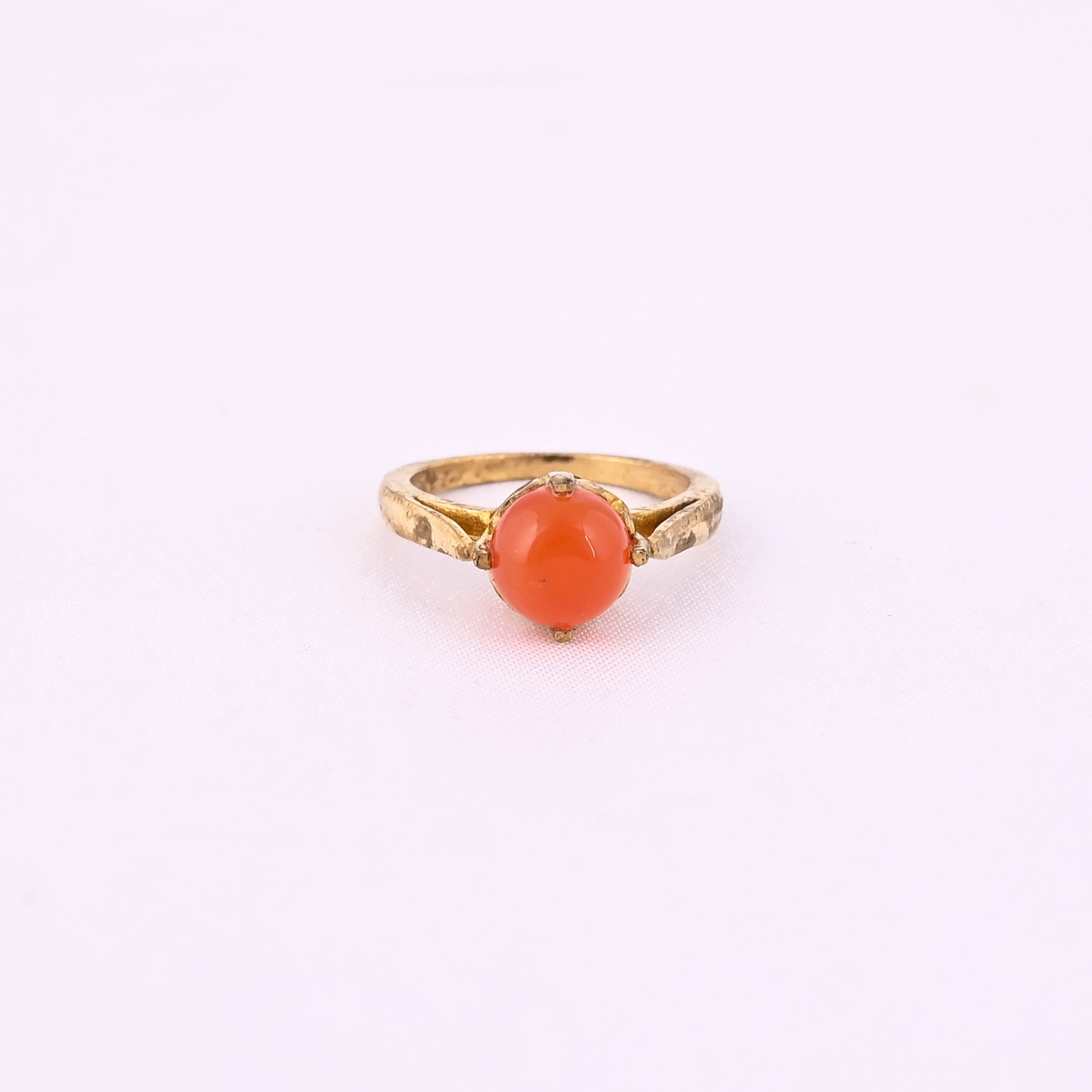 Vintage -Style Red Coral Gold Plated Ring-Exude timeless charm with this minimalist gold-toned ring, featuring a smooth round orange gemstone in a secure four-prong setting. The band has a slightly textured finish, adding a handcrafted feel to its classic silhouette. Perfect for daily wear or layering with other rings, this piece combines simplicity with subtle sophistication. Whether worn solo for a refined look or stacked for a modern twist, it’s a versatile addition to any jewelry collection.