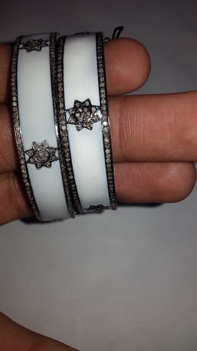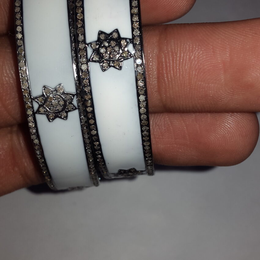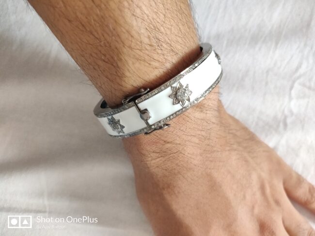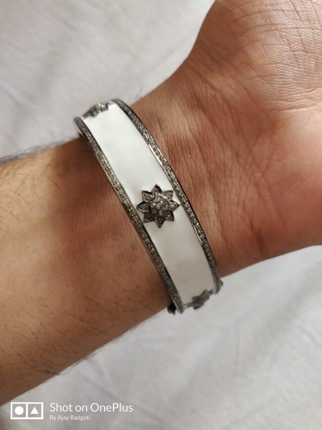 Be the first to review “White Enamel Floral Bangle with Sterling Pave Diamond Cut” Cancel reply