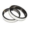 Make a graceful style statement with this sophisticated white enamel bangle, adorned with delicate floral motifs and diamond-cut embellishments. Featuring a sleek white finish and a high-polish silver-tone border encrusted with sparkling stones, this bangle blends contemporary charm with traditional elegance. The floral design at the center, set with shimmering stones, adds a refined and feminine touch. A secure clasp mechanism ensures easy wear and a snug fit, perfect for both everyday elegance and festive flair.
